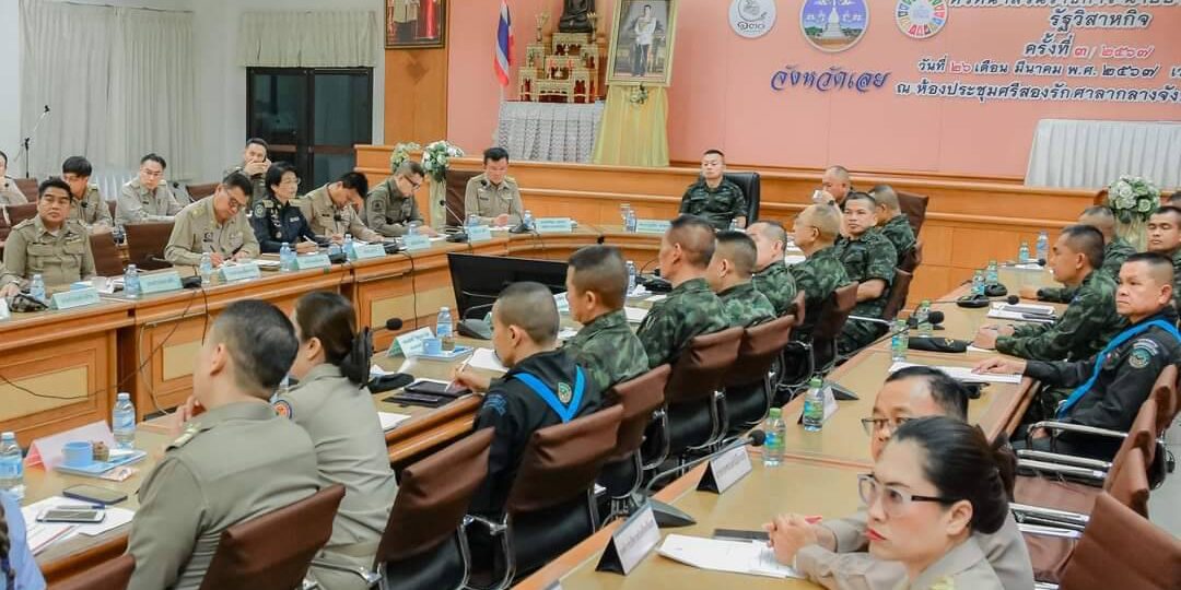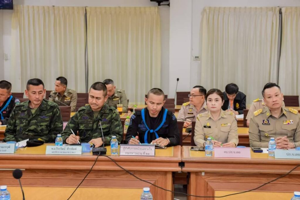 เมื่อวันที่ 26 มี.ค.67 เวลา 13.30 น. ที่ห้องประชุมศรีสองรัก ชั้น 5 ศาลากลางจังหวัดเลย พล.ท. บุญสิน พาดกลาง รอง ผอ.รมน.ภาค 2 (1) เป็นผู้แทน พล.ท อดุลย์ บุญธรรมเจริญ มทภ.2/ผอ.รมน.ภาค 2 โดย กอ.รมน.ภาค 2 กำหนดตรวจติดตามและประเมินผลการปฏิบัติงานของ กอ.รมน.จังหวัด และเพื่อการปฏิบัติการป้องกันและปราบปรามยาเสพติดในพื้นที่ กอ.รมน.ภาค 2 ให้เป็นไปด้วยความเรียบร้อย จึงกำหนดจัดชุดบูรณาการร่วมกับส่วนราชการ หน่วยงานภาคเอกชน หรือองค์กรภาคประชาชนที่เกี่ยวข้องในการกำกับดูแล ตรวจสอบ ติดตามประเมินผลการปฏิบัติการป้องกันและปราบปรามยาเสพติด โดยได้ดำเนินโครงการบูรณาการแก้ไขปัญหายาเสพติดในพื้นที่ 20 จว.ภาค ตอ./น. เพื่อสร้างความเข้าใจเกี่ยวกับแนวทางการป้องกันและแก้ไขปัญหายาเสพติดเพิ่มประสิทธิภาพในการเตรียมความพร้อม การบริหารจัดการ และการบูรณาการร่วมกับหน่วยงานที่เกี่ยวข้องเพื่อมุ่งลดผลกระทบที่เกิดจากปัญหายาเสพติดในสังคม ในพื้นที่ กอ.รมน.จังหวัด ล.ย., อ.จ.และ กอ.รมน.จังหวัด อ.บ. ห้วงวันที่ 26-27 มี.ค. 67 จึงจัดตั้งคณะชุดตรวจติดตามฯ ของ ศปม.กอ.รมน.ภาค 2 รวม 5 นาย ประกอบด้วย พล.ท. บุญสิน พาดกลาง รอง ผอ.รมน.ภาค 2 (1) พล.ต. ปิยะพณห์ ฐิตวัฒนานนท์ รอง ผอ.รมน.ภาค 2 (4) พ.อ. ชวรัชต์ ทรงสุนทร ผอ.ศปม.กอ.รมน.ภาค 2, พ.อ. ชาติชาย ศรีสุราช หน.ปท.ศปม.กอ.รมน.ภาค 2, พ.อ. อมรวัฒน์ มัจฉา หน.ปส.ศปม.กอ.รมน.ภาค 2 ลงพื้นที่จังหวัดเลย ตรวจติดตามและประเมินผลการปฏิบัติงานของ กอ.รมน.จังหวัด และเพื่อการปฏิบัติการป้องกันและปราบปรามยาเสพติดในพื้นที่ กอ.รมน.ภาค 2 จ.เลย โดยมีนายกิตติคุณ บุตรคุณ รองผู้ว่าราชการจังหวัดเลย พร้อมด้วย พล.ต.นรทิป โพยนอก ผบ.กกล.สุรศักดิ์มนตรี,พ.อ.ยุทธวัฒน์ โชคชัย รอง ผบก.ภ.จว.เลย, พ.อ.อภิชาต รานอก รอง ผอ.รมน.จว.เลย(ท) นายอำเภอเข้าร่วมประชุมและรายงานข้อมูล โดยจัดชุดบูรณาการร่วมกับส่วนราชการ หน่วยงานภาคเอกชน หรือองค์กรภาคประชาชนที่เกี่ยวข้องในการกำกับดูแล ตรวจสอบ ติดตามประเมินผลการปฏิบัติการป้องกันและปราบปรามยาเสพติด โดยได้ดำเนินโครงการบูรณาการแก้ไขปัญหายาเสพติดในพื้นที่ เพื่อสร้างความเข้าใจเกี่ยวกับแนวทางการป้องกันและแก้ไขปัญหายาเสพติด เพิ่มประสิทธิภาพในการเตรียมความพร้อม การบริหารจัดการ และการบูรณาการร่วมกับหน่วยงานที่เกี่ยวข้องเพื่อมุ่งลดผลกระทบที่เกิดจากปัญหายาเสพติดในสังคม ในพื้นที่ กอ.รมน.จังหวัด ล.ย.รับฟังบรรยายสรุป ตรวจติดตามประเมินผลการปฏิบัติงานของ กอ.รมน.จังหวัด บรรยายสรุปภาพรวมงานความมั่นคง 4 ด้าน คือด้านความมั่นคงแห่งรัฐ,ด้านความมั่นคงสังคม,ด้านความมั่นคงแบบพิเศษ แ