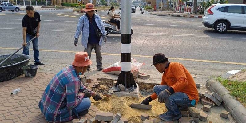 สั่งซ่อมเปลี่ยนตัวหนอนบริเวณเสาสัญญาณไฟ วงเวียนเทพสตรี (วงเวียนพระนารายณ์