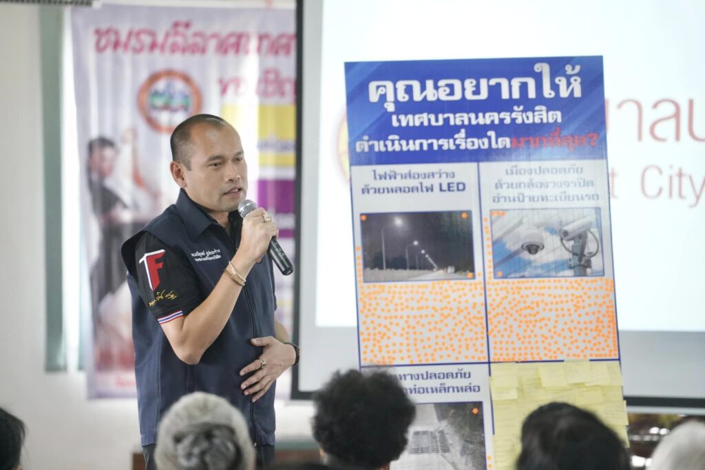 ในเรื่องของกล้องวงจรปิดผมไปบริเวณศูนย์การค้าฯ พบว่ารถ จยย.หายวันละคัน อุบัติเหตุหรืออาชญากรรมก็มีเกิดเมื่อ ได้ประสานเจ้าหน้าที่ตำรวจพบว่าเราไม่มีกล้องวงจรปิดในบริเวณนั้น เรามีโครงการดี ๆ หลายอย่างที่จะทำให้ประชาชน โดยเฉพาะความปลอดภัย เพื่อคุณภาพชีวิตที่ดีขึ้นในนครรังสิตของเรา เมื่องบประมาณไม่ผ่าน ผมก็ไม่ท้อถอยได้ประสานเอกชนที่อยากจะมาทดลองติดให้มาช่วยเหลือเราในสถานการณ์ตอนนี้ และอยู่ระหว่างการติดตั้งแล้ว หากสิ่งใดทำได้ผมก็จะทำ อย่างเต็มที่ ถึงแม้ว่าสภาฯของเทศบาลจะไม่อนุมัติก็แล้วแต่