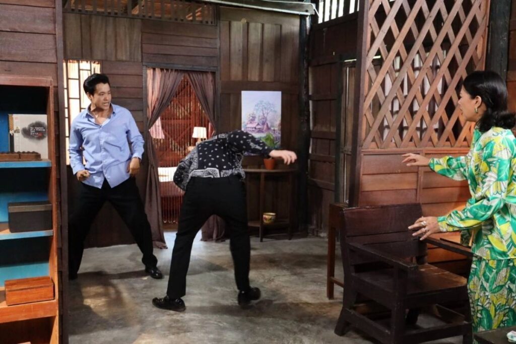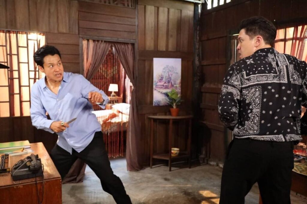 ก่อนจะไปรับชมแบบเต็มๆ ในวันศุกร์ที่จะถึงนี้ เรามีฉากเบื้องหลังมาฝากเพื่อเรียกน้ำย่อยความสนุก สองผู้กำกับฯ ต้อย จารึก และ เอ๋ กษมา ใช้พื้นที่ ตลาดเก่า 100 ปี คลอง 12 ลำลูกกา จ.ปทุมธานี เป็นสถานที่ถ่ายทำ ทีมงานเซ็ทบ้านไม้หลังหนึ่งเป็น “บ่อนการพนัน” ซึ่งด้านในเป็นห้องนอนของแผน