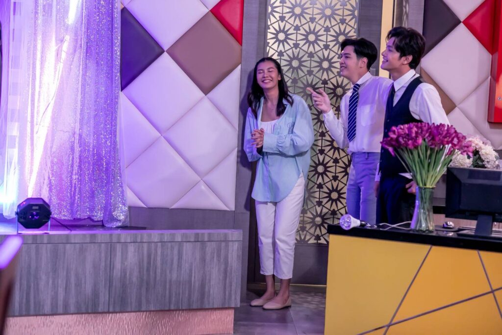 โดยเริ่มถ่ายทำฉากที่ ผู้จัดการร้าน ยกมือไหว้ขอร้องให้ แว่น ขึ้นร้องเพลง แต่ แว่น ไม่ยอม ขาม ก็ช่วยพูด แต่ แว่น ก็ยังไม่ยอม เดือดร้อนถึง บุปผา ที่ต้องเข้ามาด้านใน และเมื่อรู้ปัญหาของ แว่น บุปผา ก็จัดการสร้างความมั่นใจแบบเต็มกระเป๋าทันที ซึ่งฉากนี้ก็ถ่ายทำผ่านไปอย่างรวดเร็วเช่นกัน เพราะนักแสดงก็เต็มที่กันทุกคน!!!