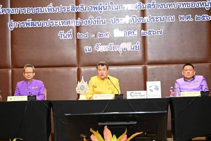 วันนี้ (28 มี.ค. 67) เวลา 15.00 น. ที่ห้องประชุมแกรนด์บอลรูม โรงแรมเทพนครและอัลวาเรซ อำเภอเมืองบุรีรัมย์ จังหวัดบุรีรัมย์ นายสุทธิพงษ์ จุลเจริญ ปลัดกระทรวงมหาดไทย เป็นประธานเปิดและมอบแนวทางการขับเคลื่อนงานตามโครงการอบรมเพิ่มประสิทธิภาพผู้นำในการเสริมสร้างบทบาทของหมู่บ้านสู่การพัฒนาประเทศอย่างยั่งยืน ประจำปีงบประมาณ พ.ศ. 2567 โดยมี นายพรพจน์ เพ็ญพาส อธิบดีกรมที่ดิน นายสยาม ศิริมงคล อธิบดีกรมการพัฒนาชุมชน นายขจร ศรีชวโนทัย อธิบดีกรมส่งเสริมการปกครองท้องถิ่น นายไชยวัฒน์ จุนถิระพงศ์ อธิบดีกรมป้องกันและบรรเทาสาธารณภัย นายศรัณย์ศักด์ ศรีเครือเนตร รองอธิบดีกรมการปกครอง นายพรรณรบ เตชะมงคลาภิวัฒน์ รองอธิบดีกรมโยธาธิการและผังเมือง นายชูศักดิ์ รู้ยิ่ง หัวหน้าผู้ตรวจราชการกระทรวงมหาดไทย นายนฤชา โฆษาศิวิไลซ์ ผู้ว่าราชการจังหวัดบุรีรัมย์ นายประสพโชค อยู่สำราญ ที่ปรึกษาปลัดกระทรวงมหาดไทย พร้อมด้วยผู้ว่าราชการจังหวัด รองผู้ว่าราชการจังหวัด หัวหน้าส่วนราชการระดับจังหวัดในสังกัดกระทรวงมหาดไทย และนายอำเภอในพื้นที่ภาคตะวันออกเฉียงเหนือ จาก 20 จังหวัด ได้แก่ กาฬสินธุ์ ขอนแก่น ชัยภูมิ นครพนม นครราชสีมา บึงกาฬ บุรีรัมย์ มหาสารคาม มุกดาหาร ยโสธร ร้อยเอ็ด เลย ศรีสะเกษ สกลนคร สุรินทร์ หนองคาย หนองบัวลำภู อำนาจเจริญ อุดรธานี และอุบลราชธานี และผู้บริหารส่วนกลาง เข้าร่วมการประชุม