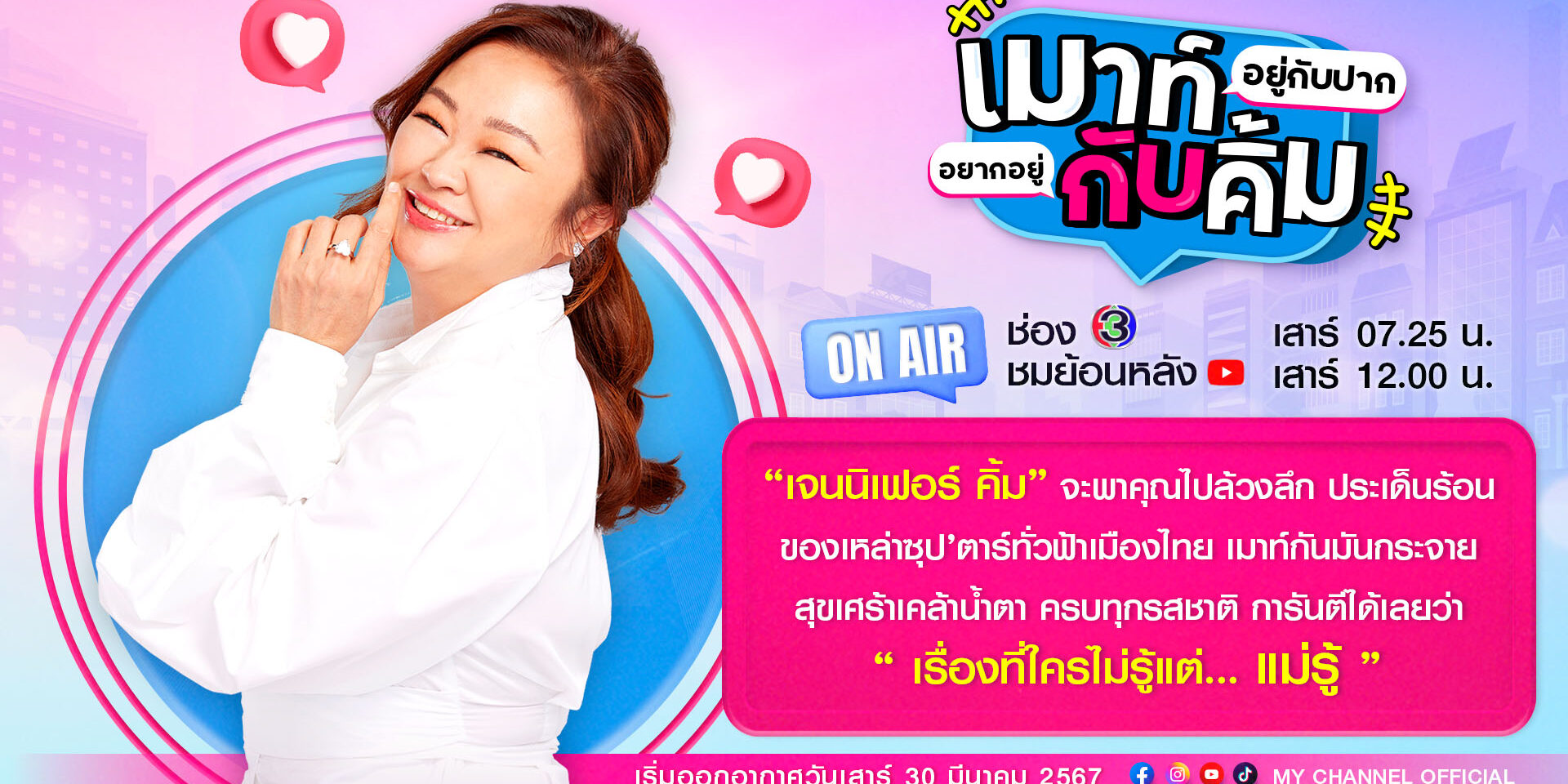เรียกว่ากระแสความปัง! ของรายการทอล์กสุดแซ่บ! “เมาท์อยู่กับปากอยากอยู่กับคิ้ม” แรงเกินต้าน ล่าสุดนำลงจอ ช่อง 3 ประกาศความแซ่บ! คูณร้อย ออกอากาศทุกเช้าวันเสาร์ เริ่มเทปแรก เสาร์ที่ 30 มีนาคม 2567 ตัวแม่ “เจนนิเฟอร์ คิ้ม” พร้อมล้วงลึกประเด็นร้อนจากทุกกระแสข่าวของซุปตาร์ทั่วฟ้าเมืองไทย