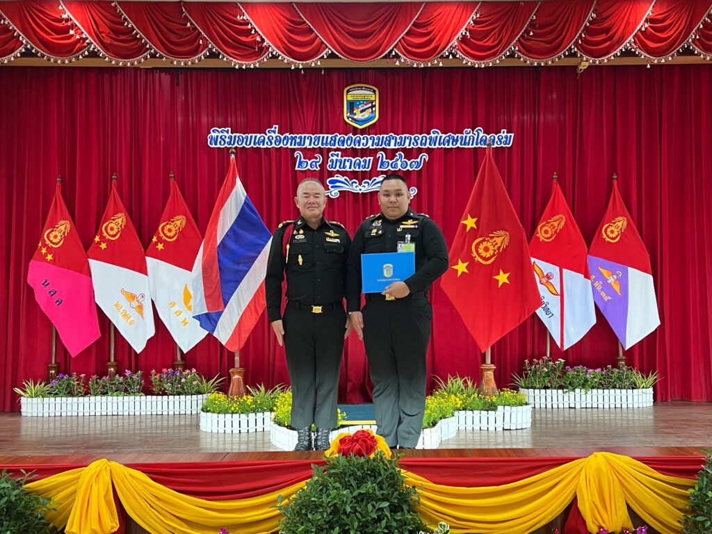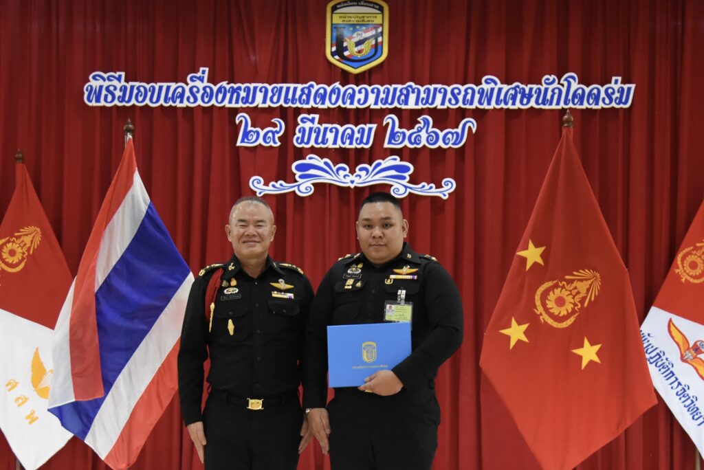 ได้เข้าร่วมรับใบประกาศนียบัตรพร้อมประดับเครื่องหมายแสดงความสามารถพิเศษนักโดดร่มชั้นกิตติมศักดิ์ ประจำปี 2567 ในพิธีข้างต้นด้วย
