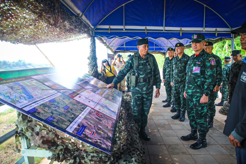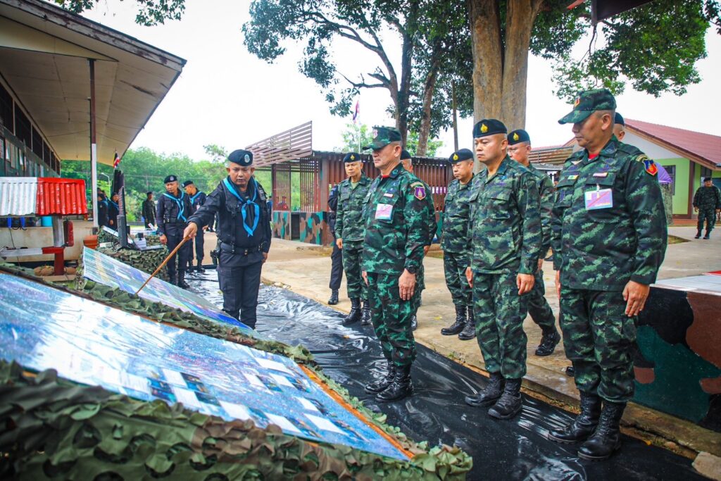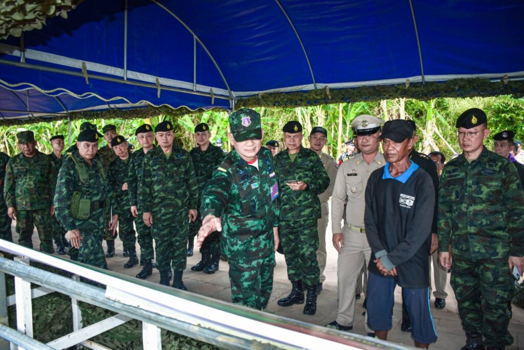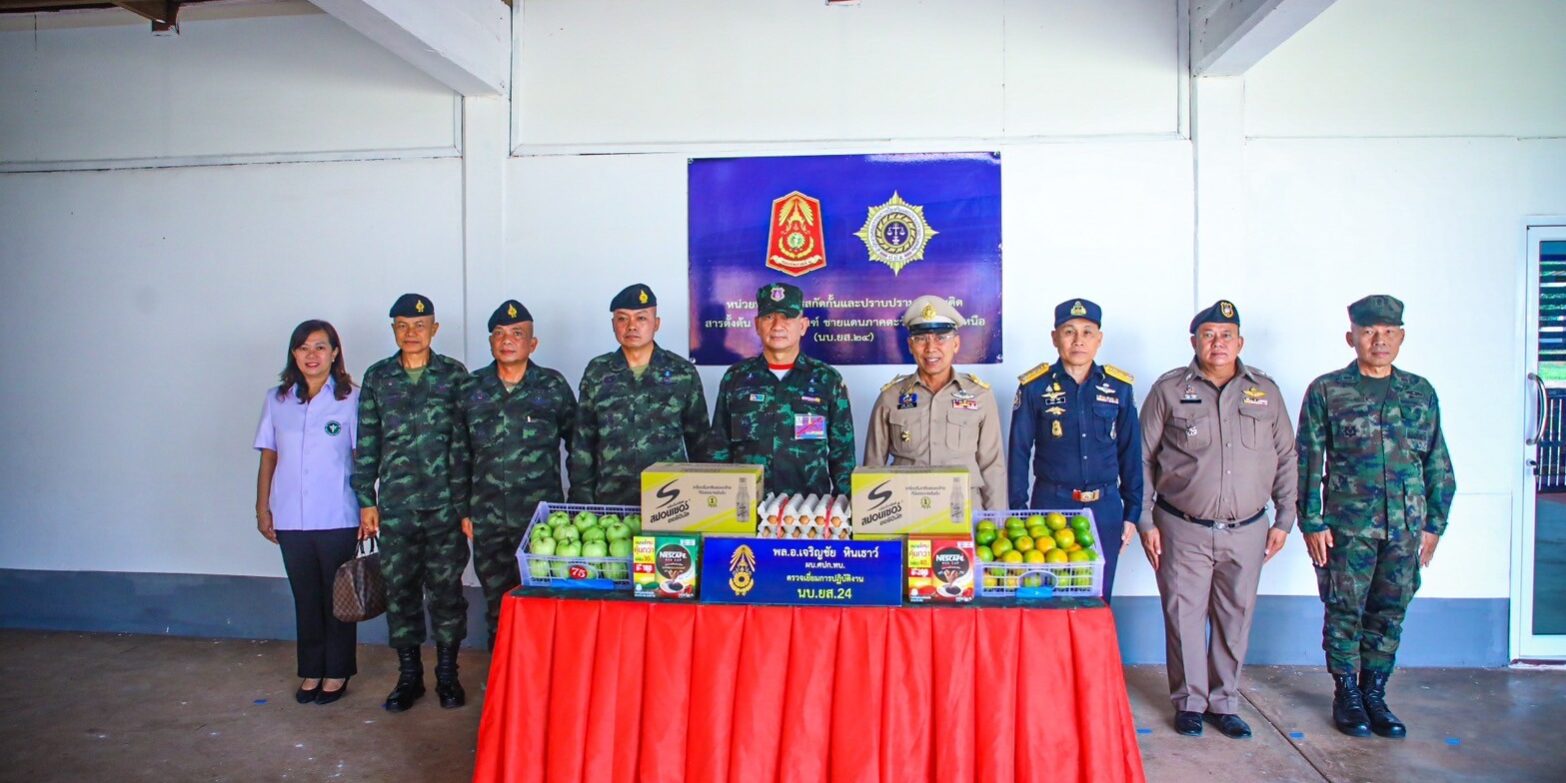 จากนั้นผู้บัญชาการทหารบก/ผู้บัญชาการศูนย์ปฏิบัติการกองทัพบก และคณะ ได้เดินทางไปตรวจพื้นที่อำเภอบ้านแพง จังหวัดนครพนม รับฟังการบรรยายสรุปผลการปฏิบัติภารกิจในห้วงที่ผ่านมา ประกอบภูมิประเทศ ( Board walk ) โดยพันเอก สุริวัชร์ อัครพรเดชาพงษ์ ผู้บังคับการกรมทหารพรานที่ 21/ผู้บังคับหน่วยเฉพาะกิจกรมทหารพรานที่ 21 มอบหมายให้ ร้อยโท วันชาติ เหมือนปืน ผู้บังคับกองร้อยเฉพาะกิจทหารพรานที่ 2101 หน่วยเฉพาะกิจกรมทหารพรานที่ 21 บรรยายสรุปผลการปฏิบัติภารกิจในห้วงที่ผ่านมา จากนั้นผู้บัญชาการทหารบก/ผู้บัญชาการศูนย์ปฏิบัติการกองทัพบกและคณะ ได้พบปะให้โอวาท มอบนโยบาย ข้อเน้นย้ำ และมอบแนวทางการปฏิบัติภารกิจ ให้กับกำลังป้องกันชายแดนที่ปฏิบัติภารกิจในพื้นที่ชายแดนไทย – ลาว ตามลำแม่น้ำโขง ให้ยกระดับเข้มงวด เพิ่มการคุมเข้ม ช่องทางผ่านเข้า – ออกชายแดนแม่น้ำโขง เพื่อเพิ่มประสิทธิภาพการป้องกันชายแดน ในพื้นที่รับผิดชอบของหน่วย เช่น การกระทำผิดกฎหมาย การลักลอบนำเข้ายาเสพติด การหลบหนีเข้าออกนอกราชอาณาจักร เพิ่มมาตรการในการปฏิบัติจุดเฝ้าระวังช่องทางธรรมชาติ ตลอด 24 ชั่วโมง ทั้งทางบกและทางน้ำ และเน้นการบูรณาการด้านการข่าวร่วมกับทุกภาคส่วน ที่ ฐานปฏิบัติการกองร้อยเฉพาะกิจทหารพรานที่ 2101 หน่วยเฉพาะกิจทหารพรานที่ 21 อำเภอบ้านแพง จังหวัดนครพนม ซึ่งในห้วงที่ผ่านจังหวัดนครพนม ได้ประกาศพื้นที่พิเศษ ใน 4 อำเภอชายแดน เป็นพื้นที่พิเศษเร่งด่วนในการแก้ไขปัญหายาเสพติด โดยมีการจัดตั้งหน่วยบัญชาการสกัดกั้นและปราบปรามยาเสพติด เคมีภัณฑ์และสารตั้งต้นชายแดนภาคตะวันออกเฉียงเหนือ โดยเป็นการบูรณาการกำลังทั้งทหาร ตำรวจภูธรจังหวัด สำนักงานป้องกันและปราบปรามยาเสพติด ภาค 4 และหน่วยงานที่เกี่ยวข้องในพื้นที่จังหวัดนครพนม เสริมความเข้มแข็งตามแนวชายแดนมากยิ่งขึ้น ซึ่งตั้งแต่วันที่ 1 ตุลาคม 2566 จนถึงปัจจุบัน ในโอกาสนี้ผู้บัญชาการทหารบก/ผู้บัญชาการศูนย์ปฏิบัติการกองทัพบก ได้มอบสิ่งของบำรุงขวัญ ให้กับกำลังป้องกันชายแดนที่ปฏิบัติภารกิจในพื้นที่ชายแดนรับผิดชอบของ กองกำลังสุรศักดิ์มนตรี เพื่อเป็นขวัญกำลังใจในการปฏิบัติหน้าที่ และกล่าวขอบคุณกำลังพลที่ปฏิบัติภารกิจสำคัญในการดูแลแนวชายแดนไทย- ลาว ซึ่งมีความทุ่มเท เสียสละ ปกป้องประเทศชาติจากภัยคุกคาม ยาเสพติด หรือสิ่งผิดกฎหมาย ซึ่งแสดงถึงการปฏิบัติหน้าที่อย่างเต็มกำลังความสามารถ รวมทั้งการช่วยเหลือพี่น้องประชาชนที่ได้รับความเดือนร้อน ตามแนวชายแดนไทย-ลาว ในทุกสถานการณ์