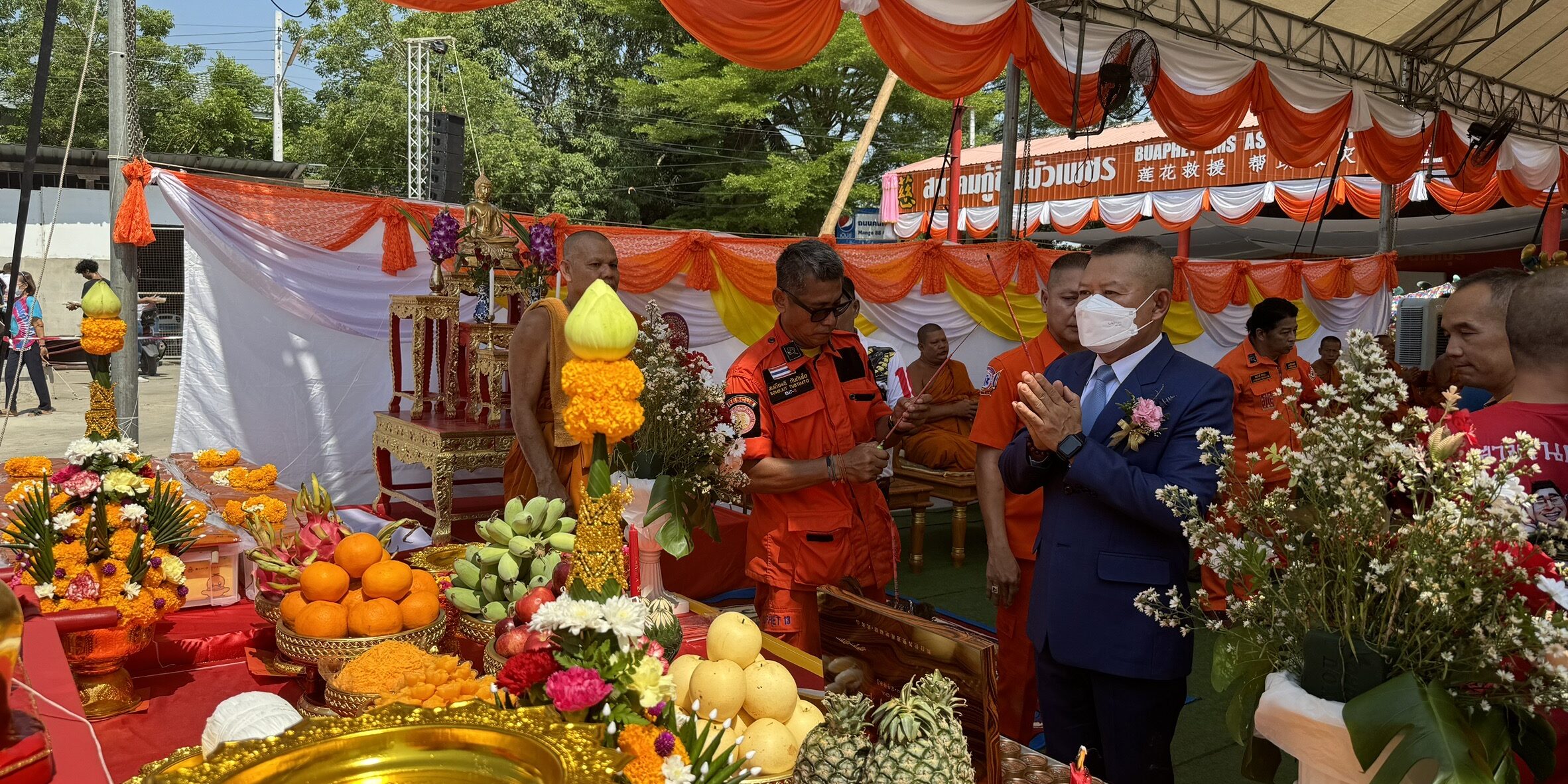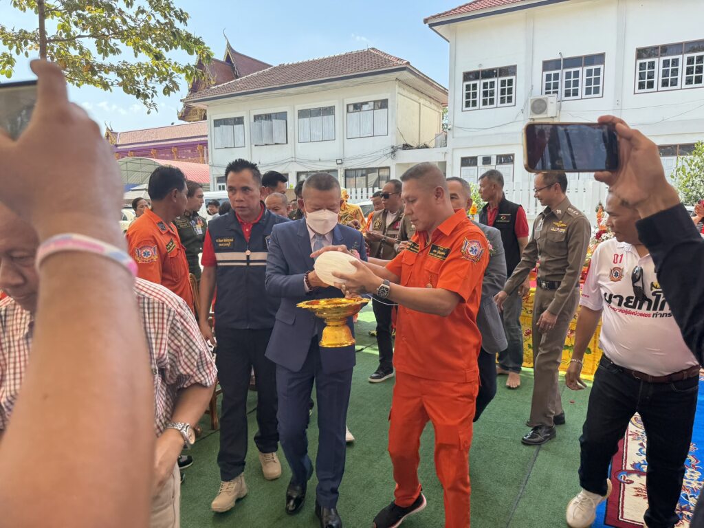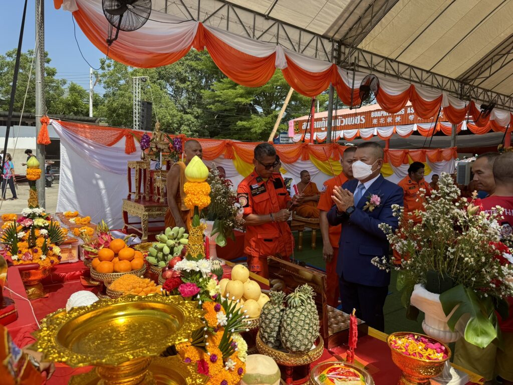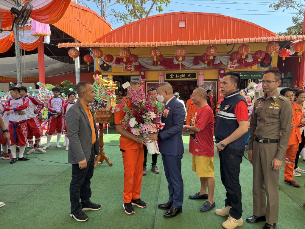 ภายในพิธีมีพระครูนนทธรรมมาภรณ์ (สมนึก กลฺยาณธมฺโม) เจ้าคณะอำเภอปากเกร็ด เจ้าอาวาสวัดเตย , พระครูกิตตินนทคุณ (ชูเกียรติ ฐิตคุโณ) เจ้าอาวาสวัดบางจาก , นายอำนาจ เรืองสำราญ นายกสมาคมกู้ชีพบัวเพชร , นายสุวิช ชูตระกูล อดีตอธิบดีอัยการภาค 7 , นายเพ็ชรทาย วงษ์คำเหลา (หม่ำ จ๊กมก) , พ.ต.อ.สมพล วงศ์ศรีสุนทรรอง ผบก.ภ.จว.นนทบุรี , พ.ต.อ.สมชาย ชูแก้ว ผกก.สภ.ปากเกร็ด , พ.ต.อ.วิวัฒน์ อัศวะวิบูลย์ ผกก. สภ.เมืองปทุมธานี คณะ กต.ตร.ภ.จว.นนทบุรี คณะ กต.ตร.สภ.ชัยพฤกษ์ พร้อมด้วยเจ้าหน้าที่ที่เกี่ยวข้อง และประชาชนในพื้นที่เข้าร่วมพิธี