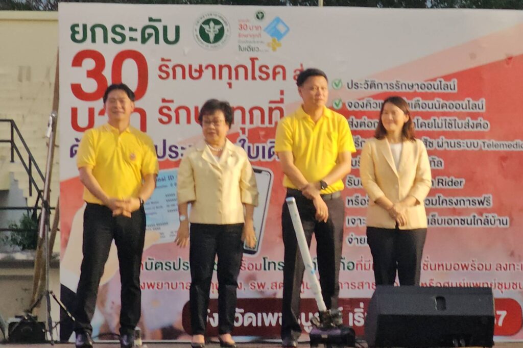 30 มีนาคม 2567 เวลา 18.30 น. ที่วิทยาลัยการกีฬาแห่งชาติ วิทยาเขตเพชรบูรณ์ อำเภอเมือง จังหวัดเพชรบูรณ์ นายแพทย์โสภณ เอี่ยมศิริถาวร รักษาการในตำแหน่งผู้ตรวจราชการกระทรวง สาธารณสุข เขตสุขภาพที่ 2 เป็นประธาน Kick-Off ยกระดับ 30 บาท รักษาได้ทุกที่ด้วยบัตรประชาชนใบเดียว ในพื้นที่ จังหวัดเพชรบูรณ์ โดยมี นายสืบพงษ์ นิ่มพูลสวัสดิ์ รองผู้ว่าราชการจังหวัดเพชรบูรณ์ วิชาญ คิดเห็น นายแพทย์สาธารณสุขจังหวัดเพชรบูรณ์ หัวหน้าส่วนราชการ แพทย์ พยาบาล อสม. และประชาชน เข้าร่วม