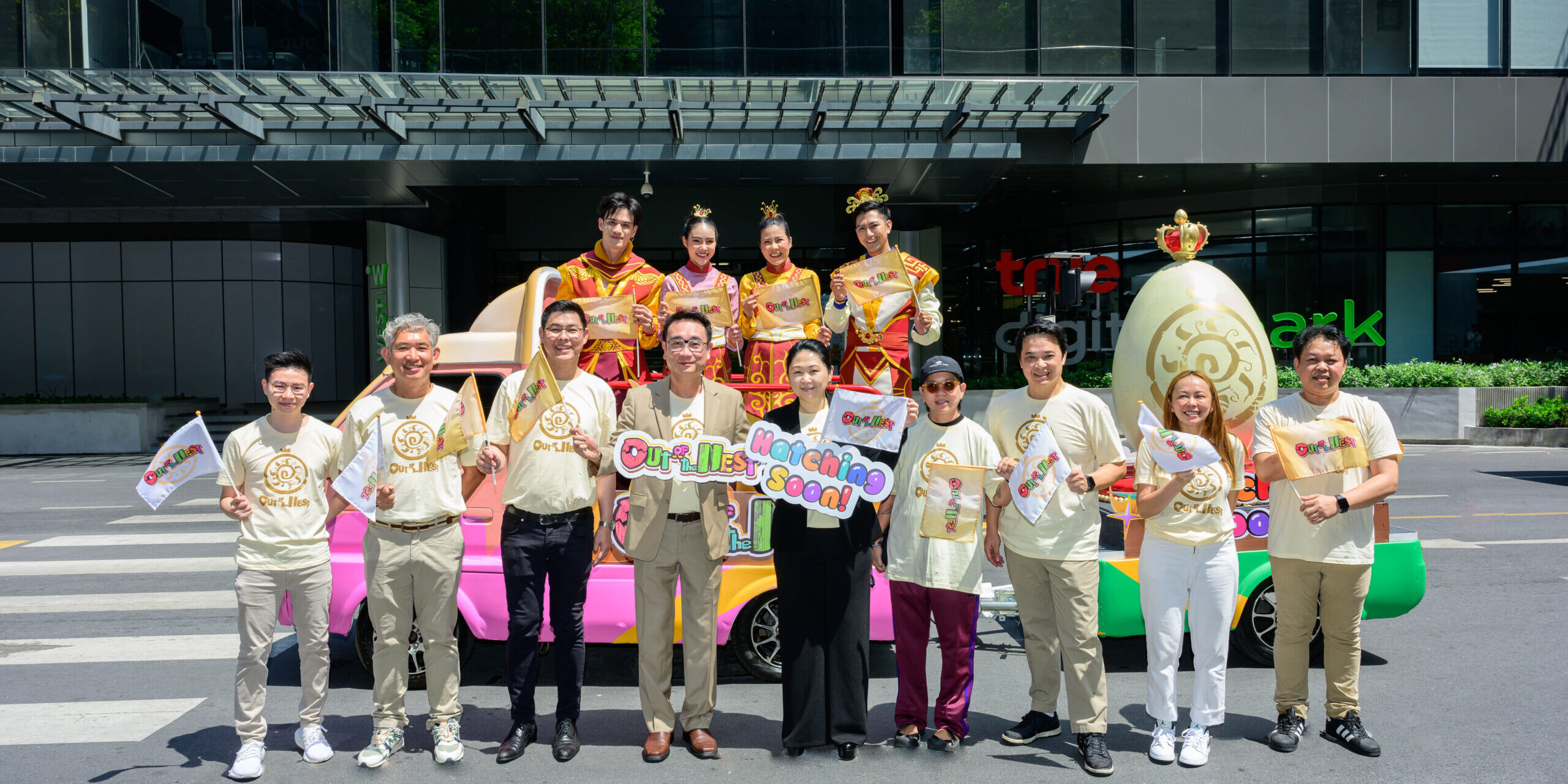 ดร.ชวัลวัฒน์ อริยวรารมย์ ประธานกรรมการบริหารและผู้ก่อตั้ง บริษัท T&B Media Global (Thailand) รวมทั้ง คณะผู้บริหารและเหล่าทีมผู้สร้าง รวมตัวกันปล่อยขบวนพาเหรดฉลองไข่มหัศจรรย์ของชาวแคสทิเลีย ณ ตึก ทรูดิจิทัลพาร์ค เมื่อวันก่อน