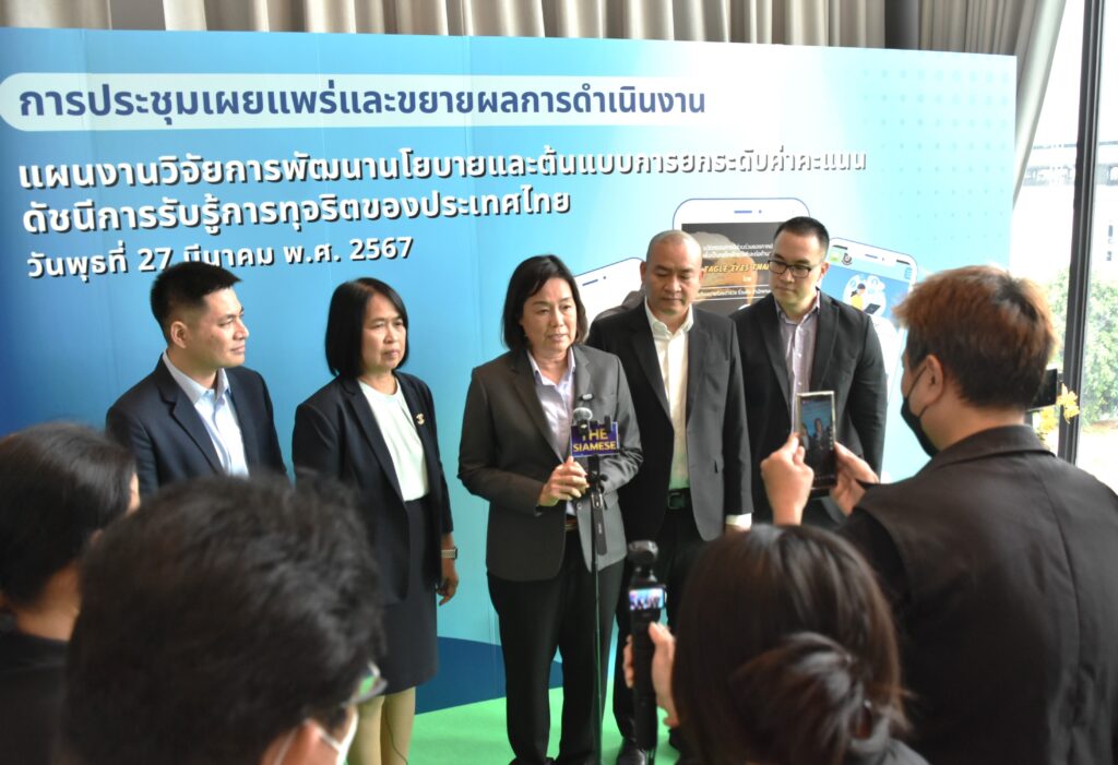 นางสาวสตตกมล เกียรติพานิช ผู้อำนวยการกองบริหารทุนวิจัยและนวัตกรรม 2 กล่าวว่า (วช.) ในฐานะหน่วยงานบริหารจัดการทุนวิจัยและนวัตกรรม ของประเทศ ได้ให้ความสำคัญในการสนับสนุนทุนวิจัยและนวัตกรรม ที่มุ่งเน้นให้เกิดผลสำเร็จที่สามารถนำไปใช้ประโยชน์ในมิติต่างๆ ทั้งมิติด้านวิชาการ ด้านเศรษฐกิจ ด้านสังคมและชุมชน และด้านนโยบายเพื่อให้เกิดประโยชน์สำคัญในการสร้างกลไกในการพัฒนาและแก้ปัญหาเร่งด่วนสำคัญของประเทศ ทั้งนี้ ปัญหาการทุจริตคอร์รัปชันถือเป็นปัญหาหนึ่งที่สำคัญที่ต้องเร่งแก้ไข เพื่อสร้างความเชื่อมั่นแก่นานาประเทศ ทั้งนี้ (วช.) ได้สนับสนุนงานวิจัยการเผยแพร่ผลการดำเนินแผนงานการพัฒนานโยบายและต้นแบบการยกระดับค่าคะแนนดัชนีการรับรู้การทุจริตของประเทศไทย ซึ่งมี ผศ.พ.ต.อ.ดร.ธิติ มหาเจริญ เป็นหัวหน้าแผนงาน เพื่อสำรวจการรับรู้การมีส่วนร่วมของภาคประชาชนและภาคธุรกิจ และนำมาสร้างเครื่องมือและกลไกสำคัญในการส่งเสริมและป้องกันปัญหาการทุจริตคอร์รัปชันของประเทศไทยในสายตาของนานาชาติ อันจะเป็นผลดีต่อการขับเคลื่อนการพัฒนาประเทศทั้งด้านเศรษฐกิจและสังคมต่อไปในอนาคตอย่างยั่งยืน