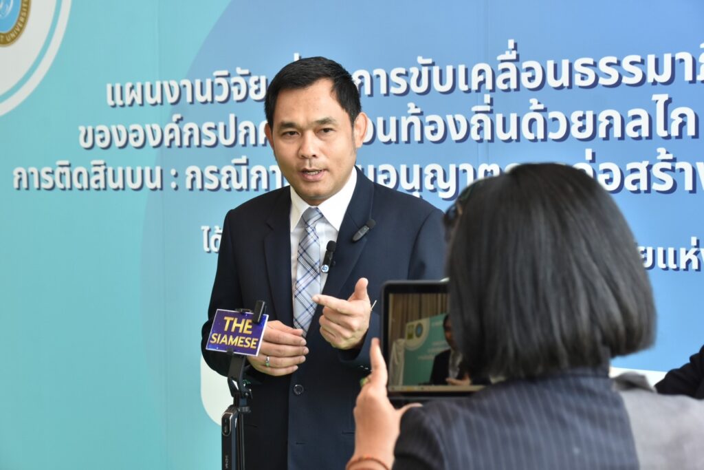 ดร.ธนภัทร ปัจฉิมม์ คณบดีโรงเรียนกฎหมายและการเมือง มหาวิทยาลัยสวนดุสิต และผู้บริหารจัดการแผนงาน ได้กล่าวถึงความสำคัญในการเผยแพร่การดำเนินงานผลงานวิจัยว่า เนื่องจากผลการสำรวจและค่าดัชนีการรับรู้การทุจริต (WEF) ในปี 2564 ได้ 42 คะแนน ปี 2565 ได้ 45 คะแนน และในปี 2566 ได้ 36 คะแนน (จากคะแนนเต็ม 100 คะแนน) ซึ่งจากผลการสำรวจขององค์กรความโปร่งใสนานาชาติ สะท้อนให้เห็นถึงสภาพปัญหาความไม่เชื่อมั่นของนักลงทุน ในการก่อสร้างอาคารนับเป็นส่วนหนึ่งที่อาจทำให้ค่า CPI ใน WEF มีแนวโน้มสูงขึ้น ดังนั้นภาครัฐ ภาคเอกชน ภาคประชาสังคมและประชาชน ควรเข้ามามีส่วนร่วมในการขับเคลื่อนกระบวนงานและการเปิดเผยข้อมูล แบบโปร่งใสตรวจสอบได้ จึงเป็นที่มาของการจัดทำแผนงานดังกล่าวขึ้น แผนงานวิจัยเรื่อง การขับเคลื่อนธรรมาภิบาลภาคปฏิบัติขององค์กรปกครองส่วนท้องถิ่นด้วยกลไกการจัดการต่อต้านการติดสินบน: กรณีการขอใบอนุญาตการก่อสร้างอาคารของเทศบาลนคร โดยแบ่งออกเป็น โครงการย่อย 3 โครงการ ดังนี้