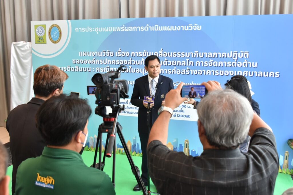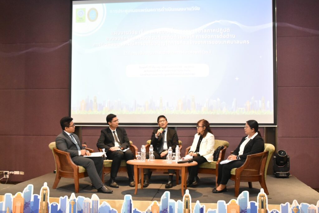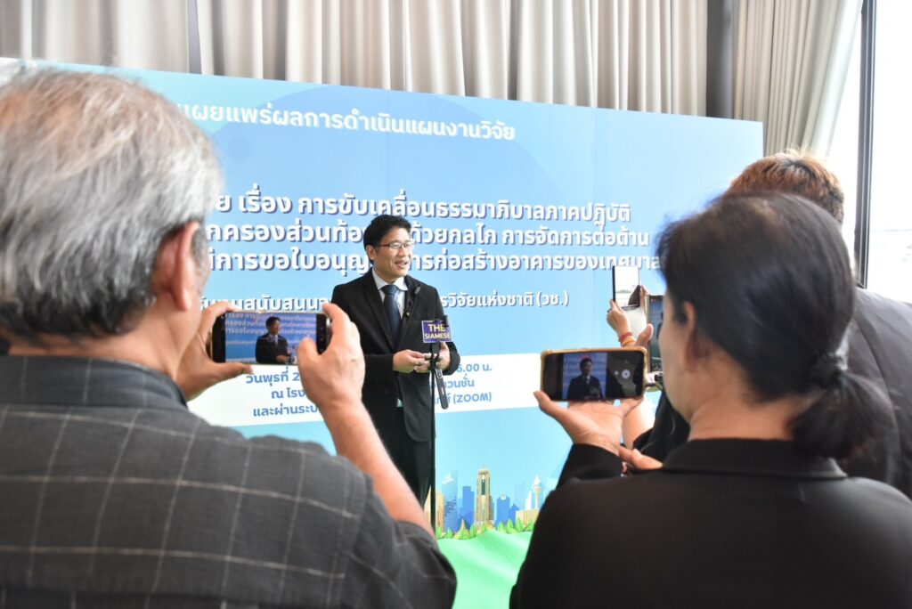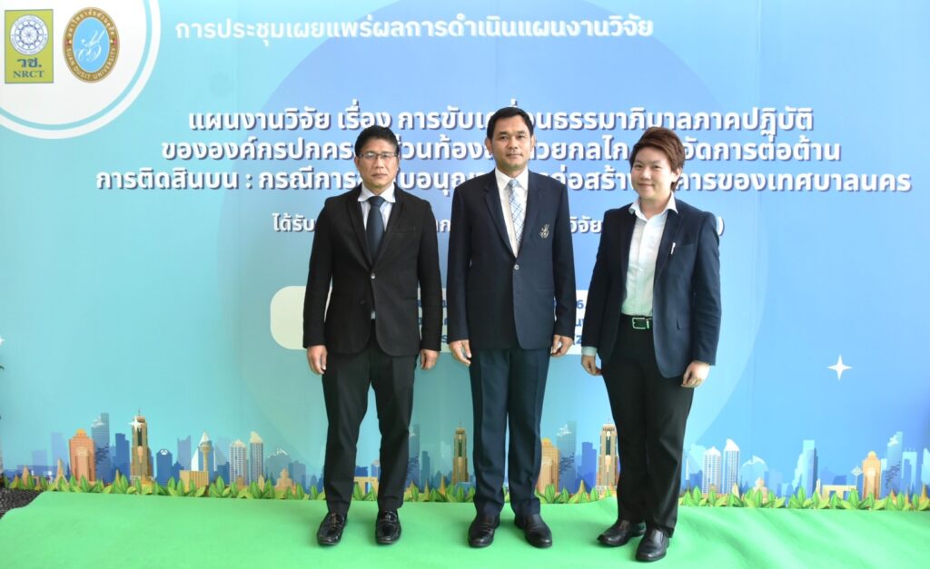 นางสาวสตตกมล เกียรติพานิช ผู้อำนวยการกองบริหารทุนวิจัยและนวัตกรรม 2 กล่าวว่า (วช.) เป็นหน่วยงานที่มุ่งเน้นการสร้างสรรค์งานวิจัยและนวัตกรรมสู่การใช้ประโยชน์ในทุกมิติ เพื่อยกระดับขีดความสามารถในการแข่งขันของประเทศให้ทันต่อสถานการณ์โลก โดยมีพันธกิจหลักประการหนึ่ง ในการบริหารจัดการทุนวิจัยและนวัตกรรมของประเทศ ด้วยยุทธศาสตร์ที่ต้องการจะยกระดับสังคมและสิ่งแวดล้อมให้มีการพัฒนาอย่างยั่งยืนด้วยวิทยาศาสตร์ วิจัยและนวัตกรรม เพื่อขับเคลื่อนการพัฒนาเศรษฐกิจและสังคมของประเทศ แบบก้าวกระโดดและอย่างยั่งยืน สำหรับการประชุมการเผยแพร่ผลการดำเนินงานของแผนงานการขับเคลื่อนธรรมาภิบาลภาคปฏิบัติขององค์กรปกครองส่วนท้องถิ่นด้วยกลไกการจัดการต่อต้านการติดสินบน: กรณีการขอใบอนุญาตการก่อสร้างอาคารของเทศบาลนครถือเป็นงานวิจัยที่จะมีประโยชน์อย่างยิ่งในการเป็นส่วนหนึ่งที่จะขับเคลื่อนเพื่อยกระดับค่า CPI โดยเฉพาะอย่างยิ่งในประเด็นการจัดการต่อต้านการติดสินบนและการเปิดเผยข้อมูล เพื่อให้เกิดการขับเคลื่อนธรรมาภิบาลภาคปฏิบัติอย่างเป็นรูปธรรมต่อไปในอนาคต