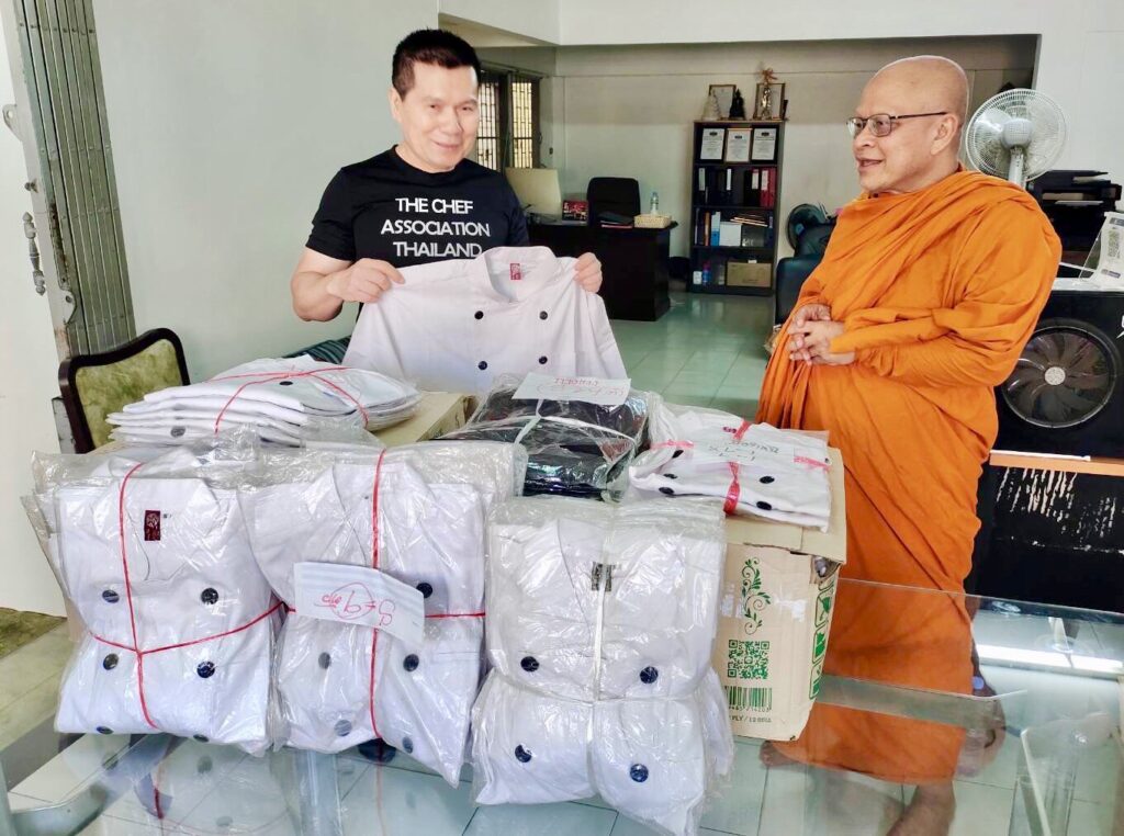 พระอาจารย์ชายกลาง อภิญาโณ กล่าวว่า เสื้อผ้าเป็นหนึ่งในปัจจัยสี่ที่มีความสําคัญต่อมนุษย์ การแต่งกาย นอกจากจะแต่งเพื่อปกปิดร่างกายให้ดูสุภาพ เรียบร้อยแล้ว ยังช่วยทําให้ร่างกายอบอุ่น สวยงาม ทั้งยังสามารถบ่งบอกถึงอาชีพของผู้ แต่งกายนั้นด้วย “เสื้อเชฟ” ที่ทางมูลนิธิสหชาติ มอบให้กับนายกทองเลี่ยม เพื่อนำไปแจกจ่ายให้กับสมาชิกในสมาคมฯ