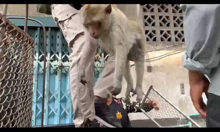 สิ้นฤทธิ์ไอ้อ้วน ลิงตัวแสบ ไล่กัดชาวบ้าน บริเวณ เขตเทศบาลเมืองลพบุรี ตำบลท่าหิน อำเภอเมือง จังหวัดลพบุรี