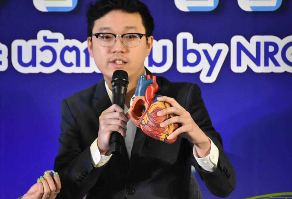 เมื่อวันที่ 28 มีนาคม 2567 สำนักงานการวิจัยแห่งชาติ (วช.) กระทรวงการอุดมศึกษา วิทยาศาสตร์ วิจัยและนวัตกรรม จัดงาน NRCT Talk รางวัลการวิจัยแห่งชาติ ประจำปี 2567 ครั้งที่ 4 ประเภท : รางวัลผลงานประดิษฐ์คิดค้น สาขาวิศวกรรมศาสตร์และอุตสาหกรรมวิจัย ในผลงาน “อุปกรณ์ถ่างขยายผนังหัวใจห้องบนจากโลหะผสมจำรูปเพื่อรักษาภาวะหัวใจล้มเหลว” ซึ่งมี นายศรัณย์ ธรรมาศิริกุล นายภวนันท์ ฤทธาเวช และคณะ จากคณะวิศวกรรมศาสตร์ มหาวิทยาลัยเทคโนโลยีพระจอมเกล้าธนบุรี ซึ่งเป็นผลงานสิ่งประดิษฐ์ที่ช่วยลดภาระการนำเข้าอุปกรณ์ทางการแพทย์และช่วยลดการสูญเสียของผู้ป่วยโรคหัวใจ โดยมี ดร.วิภารัตน์ ดีอ่อง ผู้อำนวยการสำนักงานการวิจัยแห่งชาติ เป็นประธานเปิดงานฯ ณ ศูนย์จัดการความรู้การวิจัย ชั้น 1 อาคาร วช. 1