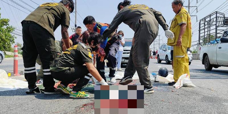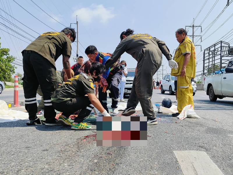 วันอังคารที่ 2 เมษายน 2567 เวลา10.00น. ประชาชนแจ้งอาสาสมัครกู้ภัยตรวจสอบอุบัติเหตุตีนสะพานข้ามแยกมหานคร ฝั่งมุ่งหน้าฉลองกรุง ถ.ฉลองกรุง จักรยานยนต์กับรถ18ล้อพ่วง ทำให้มีผู้เสียชีวิตในที่เกิดเหตุ พบเป็นหญิง1ราย บาดเจ็บและชาย1ราย ข้อมือขวาผิดรูป มีบาดแผลถลอกตามร่างกาย รถกู้ภัยฯนำส่งรพ.นวมินทร์9 ซึ่งจนท.สน.ลำผักชี จะหาสาเหตุการเกิดอุบัติเหตุในครั้งนี้