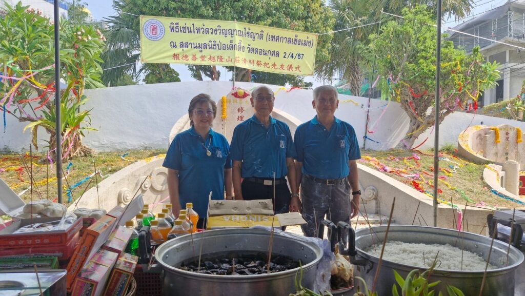 วันนี้ (วันอังคารที่ 2 เมษายน 2567) และเมื่อวันพุธที่ 27 มีนาคม 2567 ที่ผ่านมา มูลนิธิป่อเต็กตึ๊ง นำโดย นายวิชิต ชินวงศ์วรกุล รองประธานกรรมการ นายวิรุฬ เตชะไพบูลย์ ที่ปรึกษาประธานกรรมการ นายจารุรัตน์ คุณัตถานนท์ กรรมการและเหรัญญิก และนายสุหัทย์ ไพรสานฑ์กุล กรรมการ พร้อมด้วย นางชุติมา ตันติศิริวัฒน์ ผู้ช่วยกรรมการ นำทีมเจ้าหน้าที่บริหาร และพนักงาน เป็นตัวแทนบุตรหลาน ประกอบพิธีเซ่นไหว้ดวงวิญญาณไร้ญาติ เนื่องในเทศกาลเช็งเม้ง ประจำปี 2567 โดยเครื่องเซ่นไหว้ประกอบไปด้วย เครื่องคาวหวาน กระดาษเงิน-กระดาษทอง และดอกไม้หอม ณ สุสานมูลนิธิป่อเต็กตึ๊ง อ.บ้านแพ้ว จ.สมุทรสาคร และ สุสานวัดดอนกุศล (สุสานเก่าของมูลนิธิ) เขตสาทร กรุงเทพฯ