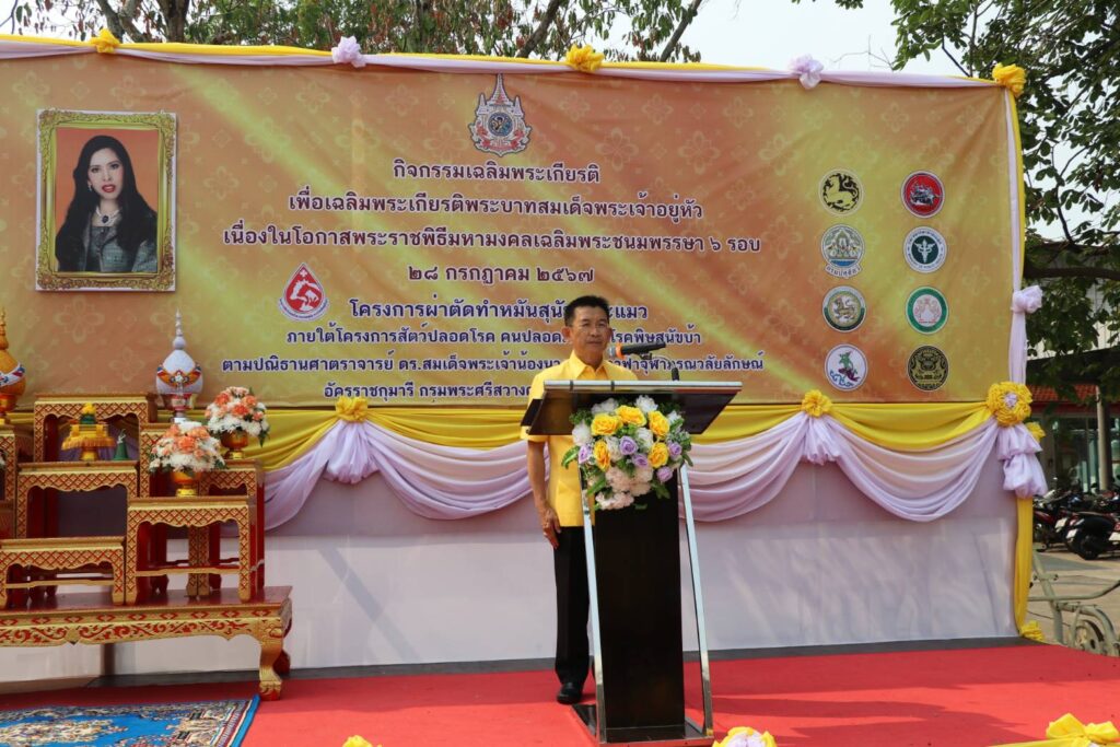 วันพุธที่ 3 เมษายน 2567 เวลา 9.30 น.นายสุเมธ ธีรนิติ ผู้ว่าราชการจังหวัดสิงห์บุรี เป็นประธานในพิธีเปิดกิจกรรมเฉลิมพระเกียรติพระบาทสมเด็จพระเจ้าอยู่หัว เนื่องในโอกาสมหามงคลเฉลิมพระชนมพรรษา 6 รอบ 28 กรกฏาคม 2567 โครงการผ่าตัดทำหมันสุนัขและแมวภายใต้โครงการสัตว์ปลอดโรค คนปลอดภัยจากโรคพิษสุนัขบ้า ตามพระปณิธานศาสตราจารย์ ดร.สมเด็จพระเจ้านางเธอ เจ้าฟ้าจุฬาภรณวลัยลักษณ์อัครราชกุมารีกรมพระศรีสวางควัฒนวรขัติยราชนารี