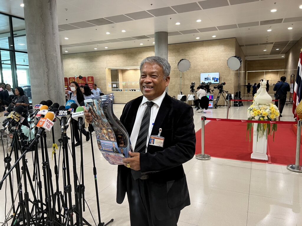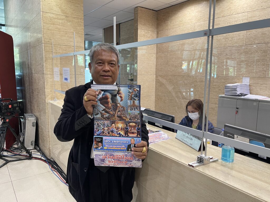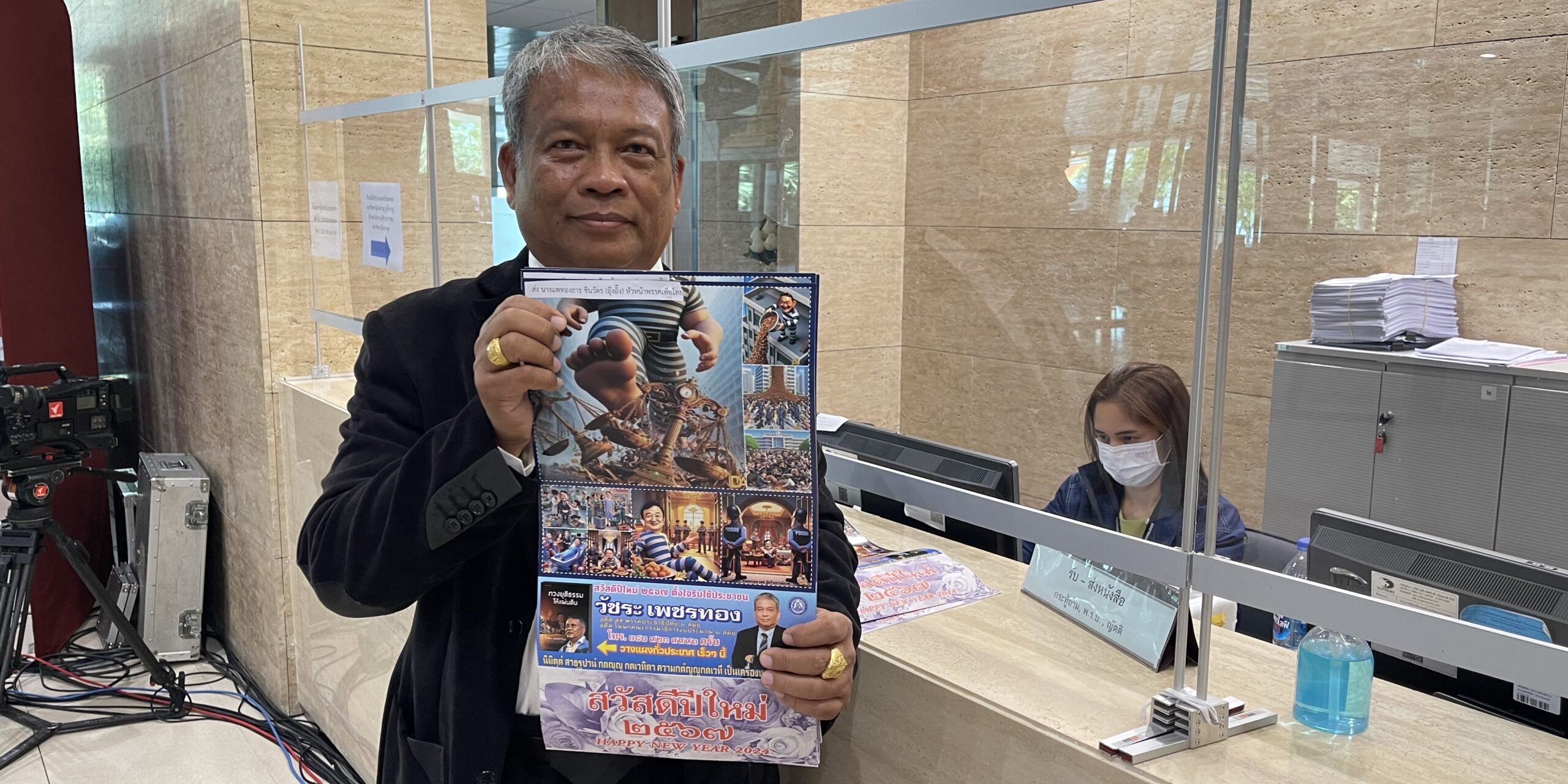 3 มี.ค.2567 – เมื่อเวลา13.00 น. ที่รัฐสภา นายวัชระ เพชรทอง อดีตส.ส.พรรคประชาธิปัตย์ ได้นำปฏิทินที่มีรูปภาพการ์ตูนล้อเลียนนายทักษิณ ชินวัตร อดีตนายกรัฐมนตรี แต่งกายคล้ายนักโทษ ที่กำลังทำลายกระบวนการยุติธรรม โดยมอบปฏิทินดังกล่าวผ่านผู้บังคับบัญชากลุ่มงานบริหารทั่วไปและสารบรรณ สำนักบริหารงานกลาง สำนักงานเลขาธิการสภาผู้แทนราษฎร เพื่อมอบให้น.ส.แพทองธาร ชินวัตร (อุ๊งอิ๊ง) หัวหน้าพรรคเพื่อไทย นายวันมูหะมัดนอร์ มะทา ประธานสภาผู้แทนราษฎร และพ.ต.อ.ทวี สอดส่อง รมว.ยุติธรรมและหัวหน้าพรรคประชาชาติ โดยนายวัชระ จะนำปฏิทินดังกล่าวที่จัดทำขึ้น 10,000 ชุด มอบให้ประชาชนต่อไป
