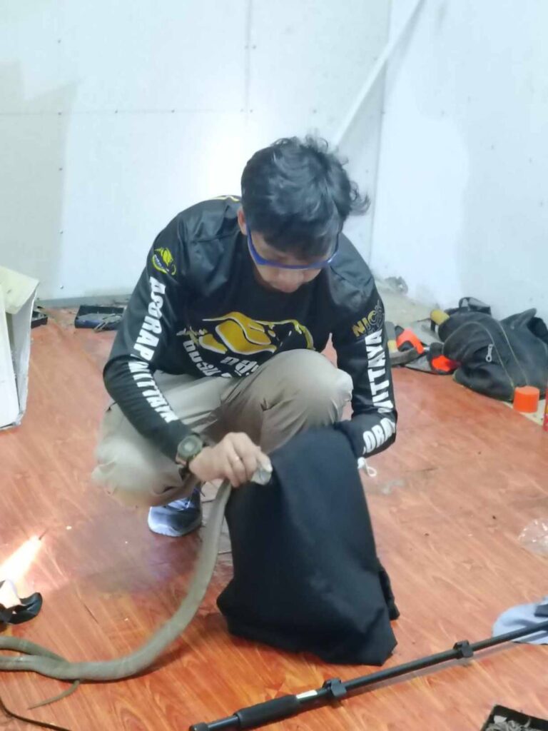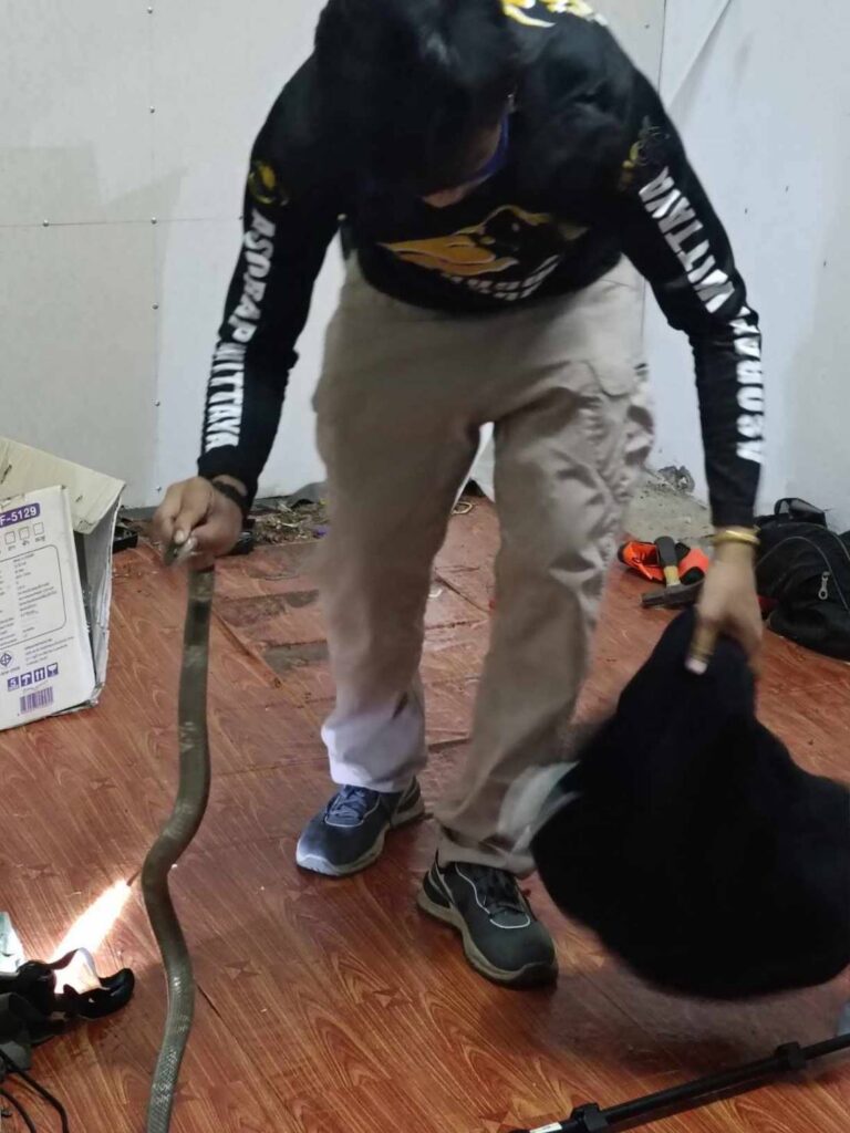 วันที่ 3 เมษายน 2567 เวลา 21:00 น เจ้าของบ้าน ซอยสวนโกศัยหมู่ที่ 6 ตำบลทุ่งยั้งอำเภอลับแลจังหวัดอุตรดิตถ์ แจ้งขอความช่วยเหลือผ่านทางผู้สื่อข่าว จึงประสานต่อไปยังน้องอาสาสมัครที่อยู่ใกล้เคียงขอความอนุเคราะห์จากอาสาสมัครกู้ภัย ในเขตพื้นที่ตำบลทุ่งยั้ง จับสัตว์เลื้อยคลานเบื้องต้นยังไม่ทราบชนิด ซึ่งนอนขดอยู่ใต้เตียง เมื่ออาสาสมัครกู้ภัยฯไปถึง ออกตรวจสอบ พบ เป็นงูเห่าพ่นพิษสีน้ำตาล จึงได้ทำการจับและปล่อยคืนสู่ธรรมชาติ