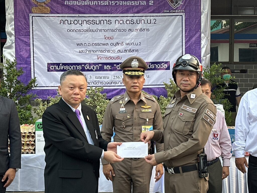 เมื่อเวลา 18.00 น. วันที่ 3 เม.ย. พล.ต.ต.อรรถพล อนุสิทธิ์ ผบก.น.2 พร้อม พ.ต.อ.ศักดิ์สิทธิ์ มีสวัสดิ์ รอง ผบก.น.2, คณะอนุกรรมการรกต.ตร.บก.น.2 และผู้แทน ที่ปรึกษาคณะอนุกรรมการ กต.ตร.บก.น.2 ร่วมออกตรวจเยี่ยมข้าราชการตำรวจ สน.พหลโยธิน และสน.สุทธิสาร เพื่อมอบอุปกรณ์ที่ใช้ในการทำงาน อาทิเช่น เครื่อง Printer, กระดาษ A4 รวมถึงมอบอาหาร และเครื่องดื่มให้แก่พนักงานสอบสวน ตามโครงการ “จับถูก” และมอบโล่และเงินรางวัลแก่ข้าราชการตำรวจที่จับกุมผู้ต้องหาคดีสำคัญได้ ตามโครงการ “ตำรวจทำดี มีรางวัล” เพื่อสร้างขวัญกำลังใจในการปฏิบัติหน้าที่แก่ข้าราชการตำรวจ
