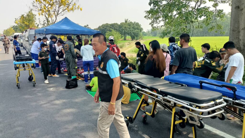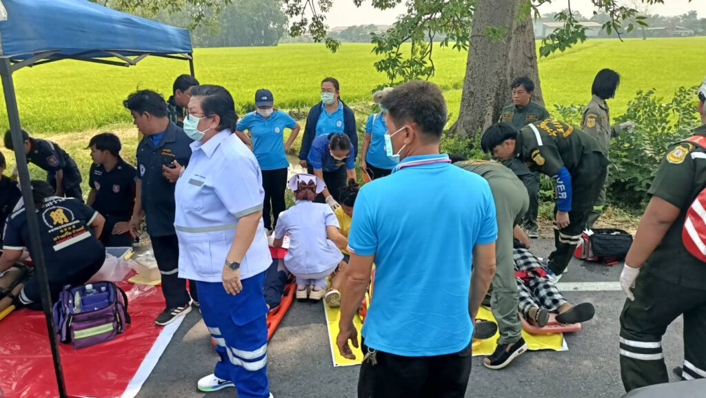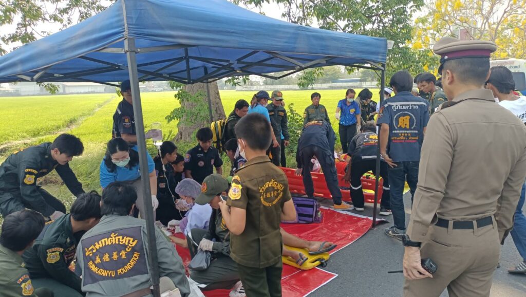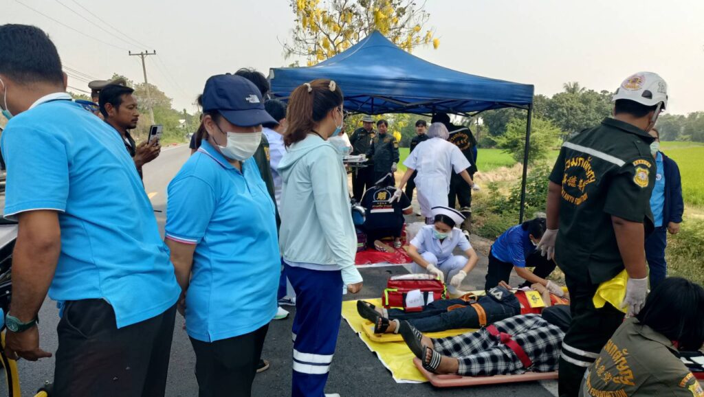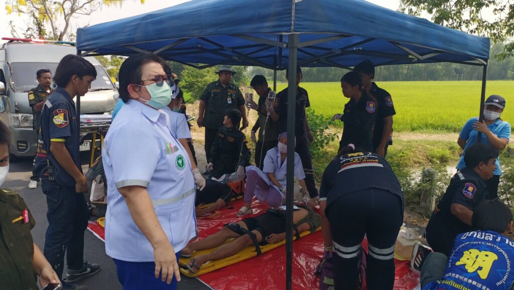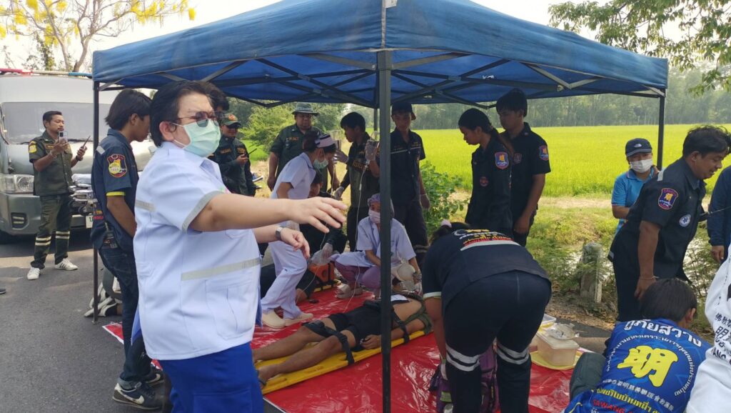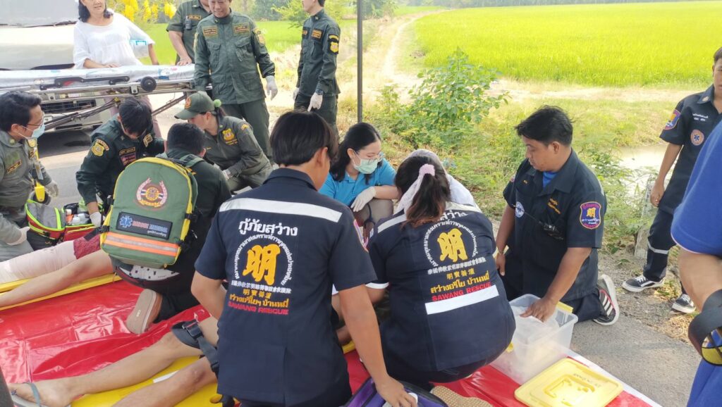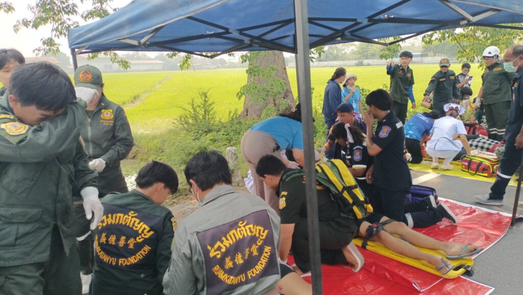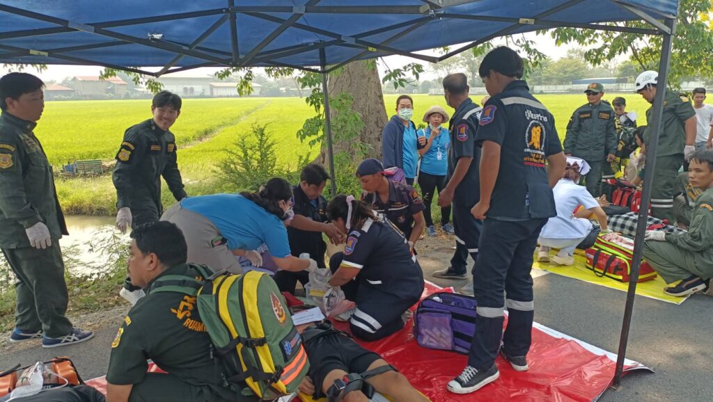 โรงพยาบาลอำเภอบ้านหมี่ ลพบุรี ร่วม เจ้าหน้าที่กู้ชีพและกู้ภัย มูลนิธิร่วมกตัญญู มูลนิธิสว่างอริโย