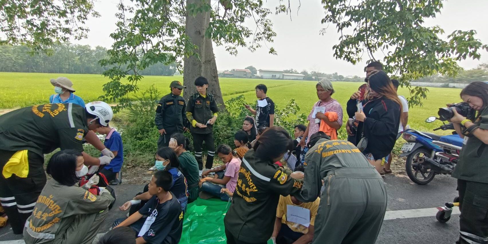 ผู้บาดเจ็บสีเหลืองร่วมกตัญญูบ้านหมี่นำส่ง รพ.บ้านหมี่ 2 ราย