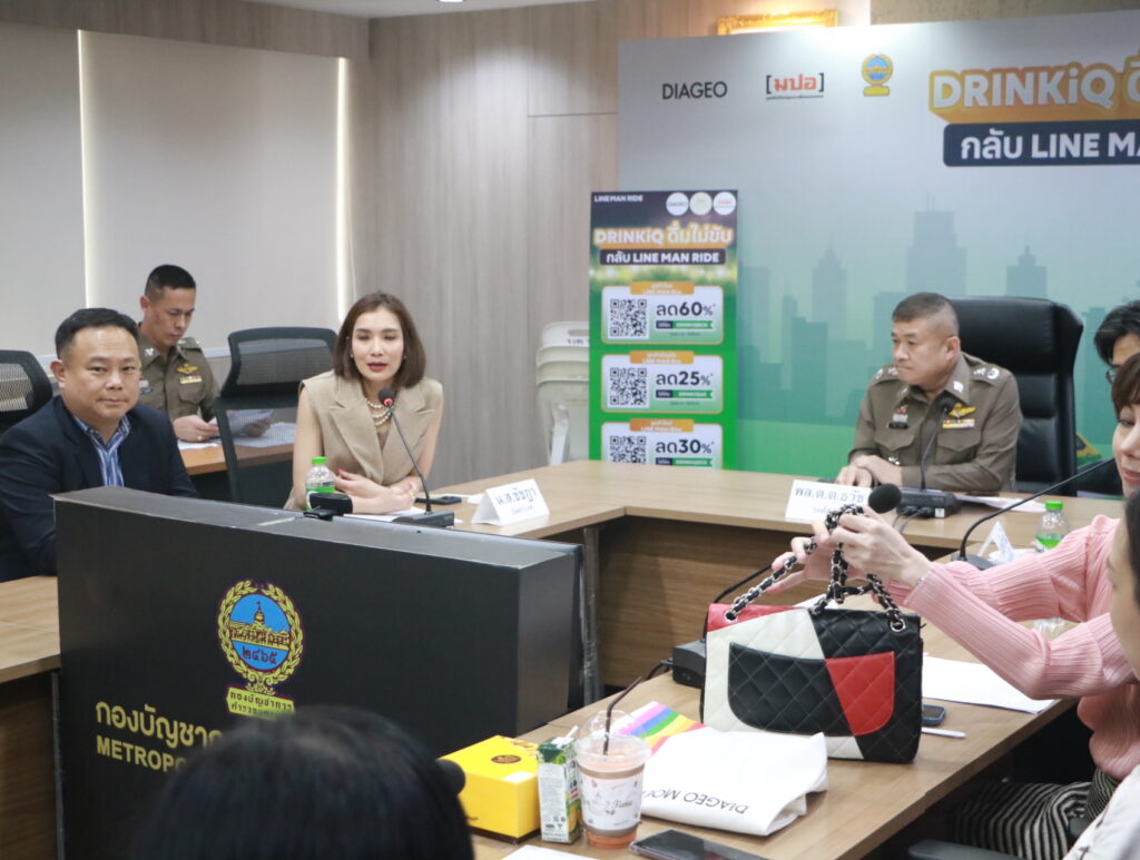 เมื่อเวลา 14.00 น.วันที่ 4 เม.ย.ที่ห้องประชุมปารุสกวัน 2 กองบัญชาการตำรวจนครบาล (บช.น.) พล.ต.ต.ธวัช วงศ์สง่า รอง ผบช.น. พร้อมด้วย ดร. เก่งการ เหล่าวิโรจนกุล ผู้อำนวยการฝ่ายองค์กรสัมพันธ์ ดิอาจิโอ โมเอ็ท เฮนเนสซี่ (ประเทศไทย) นางสาวชัชฎา จันทรางศุ ประธานมูลนิธิแก้ไขปัญหาการดื่มแอลกอฮอล์ (มปอ.) นายศิวภูมิ เลิศสรรค์ศรัญย์ รองประธานอาวุโสฝ่ายกลยุทธ์องค์กร LINE MAN Wongnai ร่วมกันแถลงโครงการ “DRINKiQ ดื่มไม่ขับ กลับ LINE MAN RIDE” เพื่อรณรงค์ดื่มไม่ขับผ่านร้านอาหารกลางคืนและด่านตรวจคัดกรองฯ ช่วงเทศกาลสงกรานต์