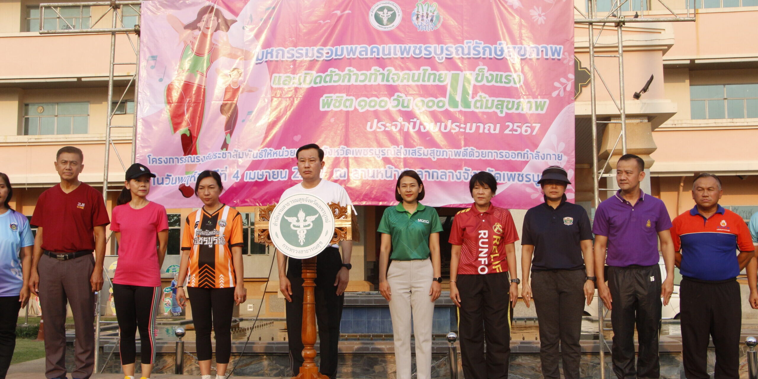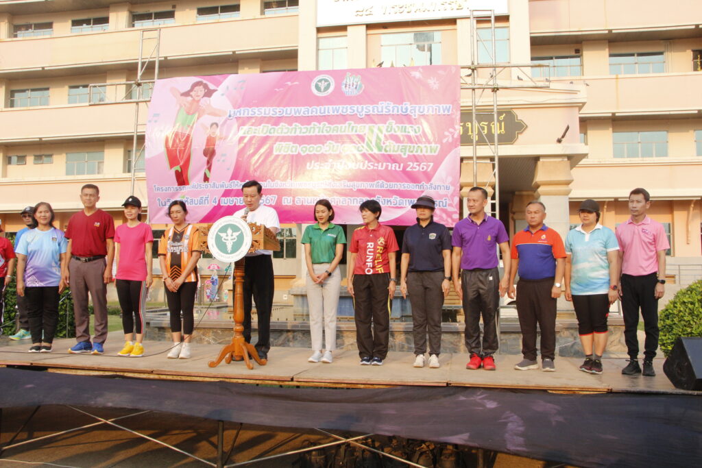 4 เมษายน 2567 เวลา 17.15 น. ที่ ลานหน้าศาลากลางจังหวัดเพชรบูรณ์ นายสืบพงษ์ นิ่มพูลสวัสดิ์ รองผู้ว่าราชการจังหวัดเพชรบูรณ์ เป็นประธานเปิดกิจกรรมรณรงค์ส่งเสริมการออกกำลังกาย “มหกรรมรวมพลคนเพชรบูรณ์รักษ์สุขภาพ” และก้าวท้าใจคนไทยแข็งแรงพิชิต 100 วัน 100 แต้มสุขภาพ ประจำปีงบประมาณ 2567 พร้อมมอบนโยบายส่งเสริมการออกกำลังกายแก่บุคลากรหน่วยงานภาครัฐ เอกชนในจังหวัดเพชรบูรณ์ โดยมี นายแพทย์วิชาญ คิดเห็น นายแพทย์สาธารณสุขจังหวัดเพชรบูรณ์ กล่าวรายงาน พร้อมด้วย นายจิรวัตร์ มณีโชติ รองผู้ว่าราชการจังหวัดเพชรบูรณ์ หัวหน้าส่วนราชการ ข้าราชการ เจ้าหน้าที่ของรัฐ และประชาชน เข้าร่วมกิจกรรม