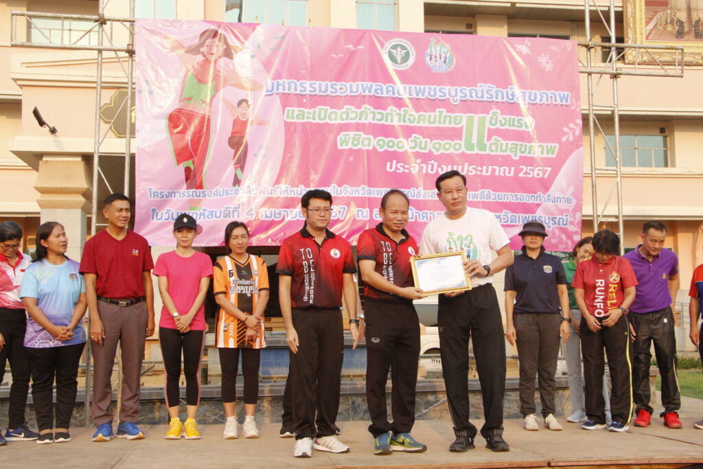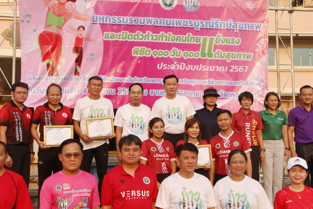 นายแพทย์วิชาญ คิดเห็น นายแพทย์สาธารณสุขจังหวัดเพชรบูรณ์ กล่าวว่า ตามนโยบายของรัฐบาลและกระทรวงสาธารณสุขที่ส่งเสริมให้มีการขับเคลื่อนการส่งเสริมและพัฒนาการออกกำลังกายให้เป็นวิถีชีวิต และ จากข้อมูลการสำรวจการมีกิจกรรมทางกายพบว่า ในปี 2565 คนไทยมีกิจกรรมทางกายอย่างเพียงพอ ร้อยละ 62 สำนักสาธารณสุขจังหวัดเพชรบูรณ์ จึงได้ จัดกิจกรรมรณรงค์ส่งเสริมการออกกำลังกาย “มหกรรมรวมพลคนเพชรบูรณ์รักษ์สุขภาพ”และก้าวท้าใจคนไทยแข็งแรงพิชิต 100 วัน 100 แต้มสุขภาพ เพื่อส่งเสริมให้บุคลากรในหน่วยงานภาครัฐเอกชน และประชาชน มีกิจกรรมทางกายและลดพฤติกรรมเนือยนิ่ง สร้างความรอบรู้ด้านกิจกรรมทางกาย โดยคาดหวังให้สามารถเป็นต้นแบบที่ดีและถ่ายทอดให้กับประชาชน ตลอดจนเพื่อตอบสนองนโยบายรัฐบาลเรื่องส่งเสริมความรอบรู้สุขภาพด้านออกกำลังกายของประชาชน