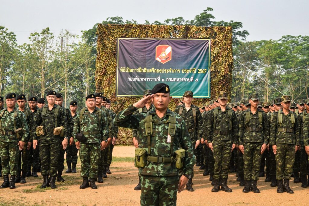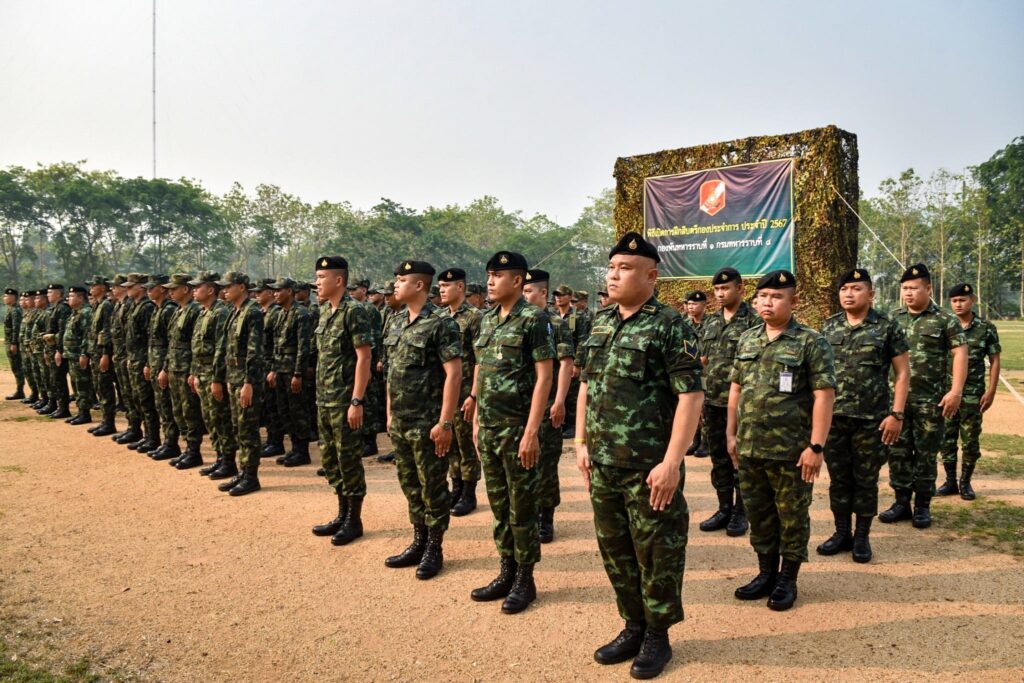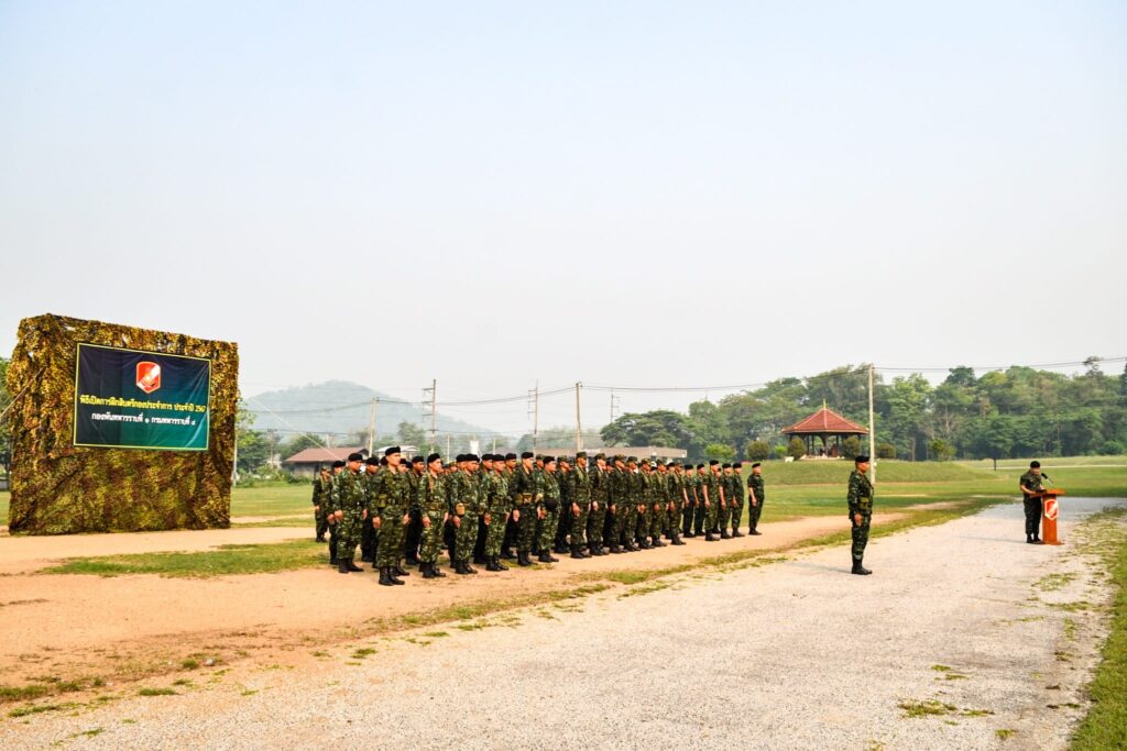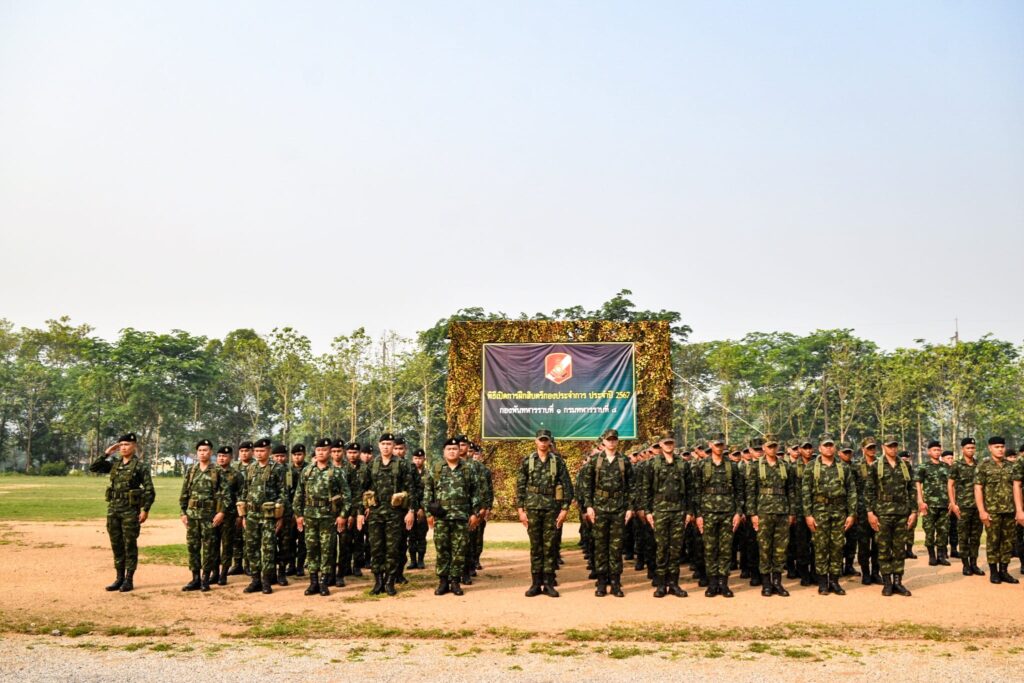 เมื่อวันที่ 5 เมษายน 2567 เวลา 08.30 น. ที่บริเวณหน้า ศาลาจรัส – ราศรี ค่ายศรีสองรัก อำเภอเมือง จังหวัดเลย พันโท จิรพงศ์ จะรอนรัมย์ ผู้บังคับกองพันทหารราบที่ 1 กรมทหารราบที่ 8 เป็นประธานเปิดการฝึกสิบตรีกองประจำการ ประจำปี 2567 ระยะเวลาการฝึก จำนวน 4 สัปดาห์ ตั้งแต่วันที่ 1 – 30 เมษายน 2567 โดยมี นายทหาร, นายสิบ และพลทหาร เข้าร่วมพิธี ซึ่งการฝึกสิบตรีกองประจำการนั้น นับว่าเป็นหลักสูตรที่มีความสำคัญ และจำเป็นอย่างยิ่ง โดยจะต้องคัดเลือกกำลังพลที่มีความรู้ ความสามารถ และมีความเหมาะสมโดยเป็นกำลังพลที่ผ่านการฝึกหลักสูตรครูทหารใหม่มาแล้ว หากมีการฝึกเตรียมการให้กับชุดครูฝึกมาเป็นอย่างดี ก็จะส่งผลต่อเนื่องถึงประสิทธิภาพในการฝึกสิบตรีกองประจำการของหน่วย ซึ่งหน่วยได้ให้หน่วยฝึกทหารใหม่ วางแผนดำเนินการฝึกสิบตรีกองประจำการอย่างจริงจังยืดถือปฏิบัติตามนโยบาย และข้อสั่งการของผู้บังคับบัญชาอย่างเคร่งครัด รวมถึงการเตรียมการในด้านต่างๆ เพื่อให้เกิดความพร้อมสำหรับการฝึกทหารใหม่ เพื่อเป็นแนวทางในการจัดการฝึกทหารกองประจำการ ที่ผ่านการฝึกหลักสูตรการฝึกครูทหารใหม่ เพื่อเพิ่มพูนคุณวุฒิให้สูงขึ้น เหมาะสมที่จะเลื่อนฐานะเป็นสิบตรีกองประจำการและบรรจุรับราชการในตำแหน่งอัตราสิบตรีกองประจำการ ตามอัตราการจัดของหน่วย ปลูกฝังอุปนิสัย ให้เป็นบุคคลที่เคร่งครัดในระเบียบวินัยของทหาร และมีความประพฤติสุภาพเรียบร้อย เพื่อเป็นแบบอย่างแก่พลทหารทั่วไปได้ และเพื่อฝึกอบรมวิซาทหารให้กับพลทหาร ที่ฝึกอบรมครูทหารใหม่จบแล้ว เข้ารับการฝึกอบรมเพื่อเลื่อนเป็นสิบตรีกองประจำการ ให้สามารถปฏิบัติหน้าที่ตามหมายเลข ชกท. ที่ระบุตามอัตราการจัดของหน่วยได้ คุณวุฒิหรับผู้ที่จะเลื่อนเป็นสิบตรีกองประจำการ ต้องสำเร็จการฝึกตามระเบียบและหลักสูตรการฝึกครูทหารใหม่ สำหรับทหารทุกเหล่าของ ทบ. 4 สัปดาห์ พ.ศ.2563 มาแล้ว ซึ่งมีผลการตรวจสอบจากลำดับสูง ลงมาตามลำดับจนกว่าจะได้ตามจำนวนที่ต้องการ เพื่อให้เข้า รับการฝึกในหลักสูตรสิบตรีกองประจำการนี้ ส่วนผู้ที่มีผลการตรวจสอบรองลงไปทีเหลือ ให้คัดเลือกเอาไปทำหน้าที่ครูทหารใหม่ ของหน่วยต่อไป