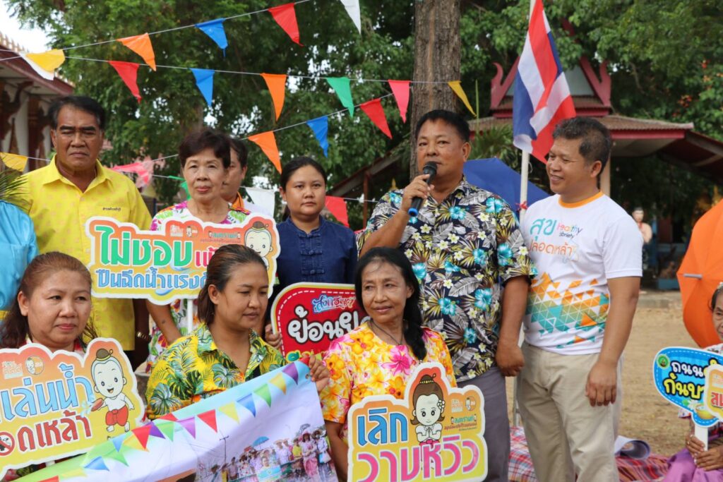 ขบวนปิดท้ายซึ่งขาดไม่ได้เลย คือขบวนรณรงค์ของทีมเยาวนชนเครือข่ายองค์กรงดเหล้าจังหวัดสิงห์บุรี โดยทุกคนจะใส่เสื้อรณรงค์งดเหล้าและคล้องมาลัยดอกรักเพื่อให้เข้ากับเทศกาลสงกรานต์ พร้อมทั้งถือป้ายและพล็อบรณรงค์เพื่อเชิญชวนทุกคนออกมาเล่นน้ำสงกรานต์อย่างถูกวิธี โดยข้อความบนพล็อบจะแตกต่างกันไป เช่น ไม่ฉวยโอกาสไม่วาบหวิว พื้นที่เล่นน้ำปลอดเหล้า เป็นต้น