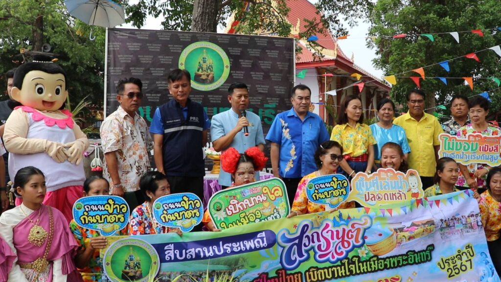 วันที่ 5 เมษายน 2567 เวลา 10.30 น.นายสมศักดิ์ เกี้ยวเกิด นายอำเภออินทร์บุรี ร่วมกับนายประกาศิต วิเศษคามิน นายกองค์การบริหารส่วนตำบลอินทร์บุรี นายพชร จันทรเศธร นายกเทศมนตรีตำบลอินทร์บุรี วัฒนธรรมจังหวัด สำนักงานพระพุทธศาสนาจังหวัด ประชาสัมพันธ์จังหวัด เครือข่ายองค์กรงดเหล้าสิงห์บุรี และองค์กรภาคีเครือข่าย แถลงข่าวเชิญร่วมงานและเที่ยวงานประเพณีสงกรานต์ ”ย้อนยุคปีใหม่ไทย เบิกบานใจในเมืองพระอินทร์”ถนนข้าวก้นบาตร ปีที่ 7”ในวันที่ 13 เมษายน 67 ณ บริเวณถนวัฒนธรรม ตั้งแต่ที่ว่าการอำเภออินทร์บุรี ถึงวัดโบสถ์ พระอารามหลวง ตำบลอินทร์บุรี อำเภออินทร์บุรี จังหวัดสิงห์บุรี กิจกรรมประกอบด้วยการประกวดตกแต่งบ้านแบบย้อนยุคเส้นทาง 1,500 เมตรที่ขบวนแห่สงกรานต์ เคลื่อนผ่านไป นอกจากจะแต่งกายย้อนยุคแล้วยังมีการจัดวางอาหารการกินไว้หน้าบ้านเพื่อแจกจ่ายให้คนที่เดินขบวนได้กินอย่างอิ่มหนำ มีทั้งผัดไท ขนมหวาน เครื่องดื่ม ไอศกรีม ผลไม้ ข้าวเกรียบและอื่นๆอีกเป็นจำนวนมาก