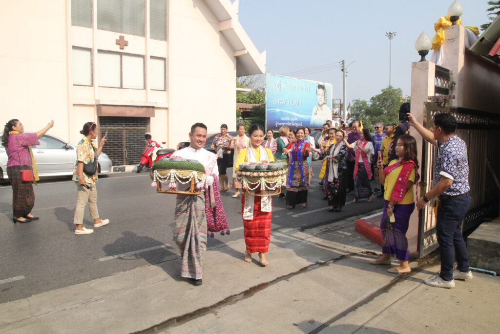 ทั้งนี้ ก่อนพิธี หัวหน้าส่วนราชการ ข้าราชการ เครือข่ายชาวมอญและสภาวัฒนธรรมจังหวัดปทุมธานี ได้จัดขบวนแห่ข้าวแช่จากบริเวณหน้าศาลากลางปทุมธานี (หลังเก่า) ประกอบด้วยวงกลองยาวและนางรำ เคลื่อนขบวนเพื่อทำพิธีส่งข้าวแช่พ่อเมืองปทุมธานี ซึ่งถือเป็นประเพณีที่เป็นเอกลักษณ์พิเศษเฉพาะของชาวรามัญในจังหวัดปทุมธานีที่สืบทอดกันมาตั้งแต่ปี พ.ศ.2552 ในช่วงเทศกาลสงกรานต์ ที่จะมีการส่งข้าวแช่ให้แก่ผู้ใหญ่ที่เคารพนับถือ ซึ่งในที่นี้ หมายถึง “ผู้ว่าราชการจังหวัด” หรือ “พ่อเมือง” ถือได้ว่า จังหวัดปทุมธานี เป็นจังหวัดเดียวที่มีประเพณี “ส่งข้าวแช่พ่อเมือง”