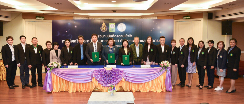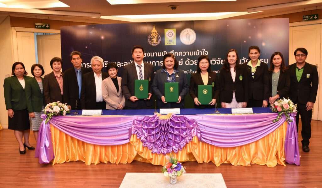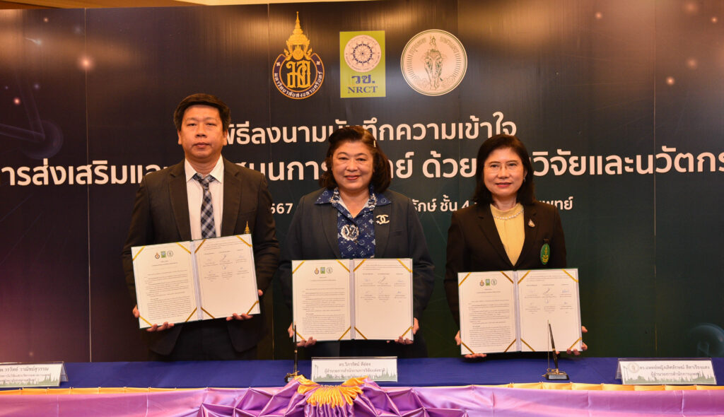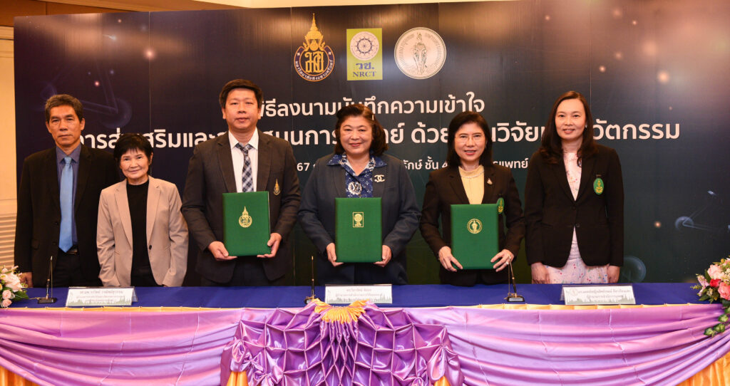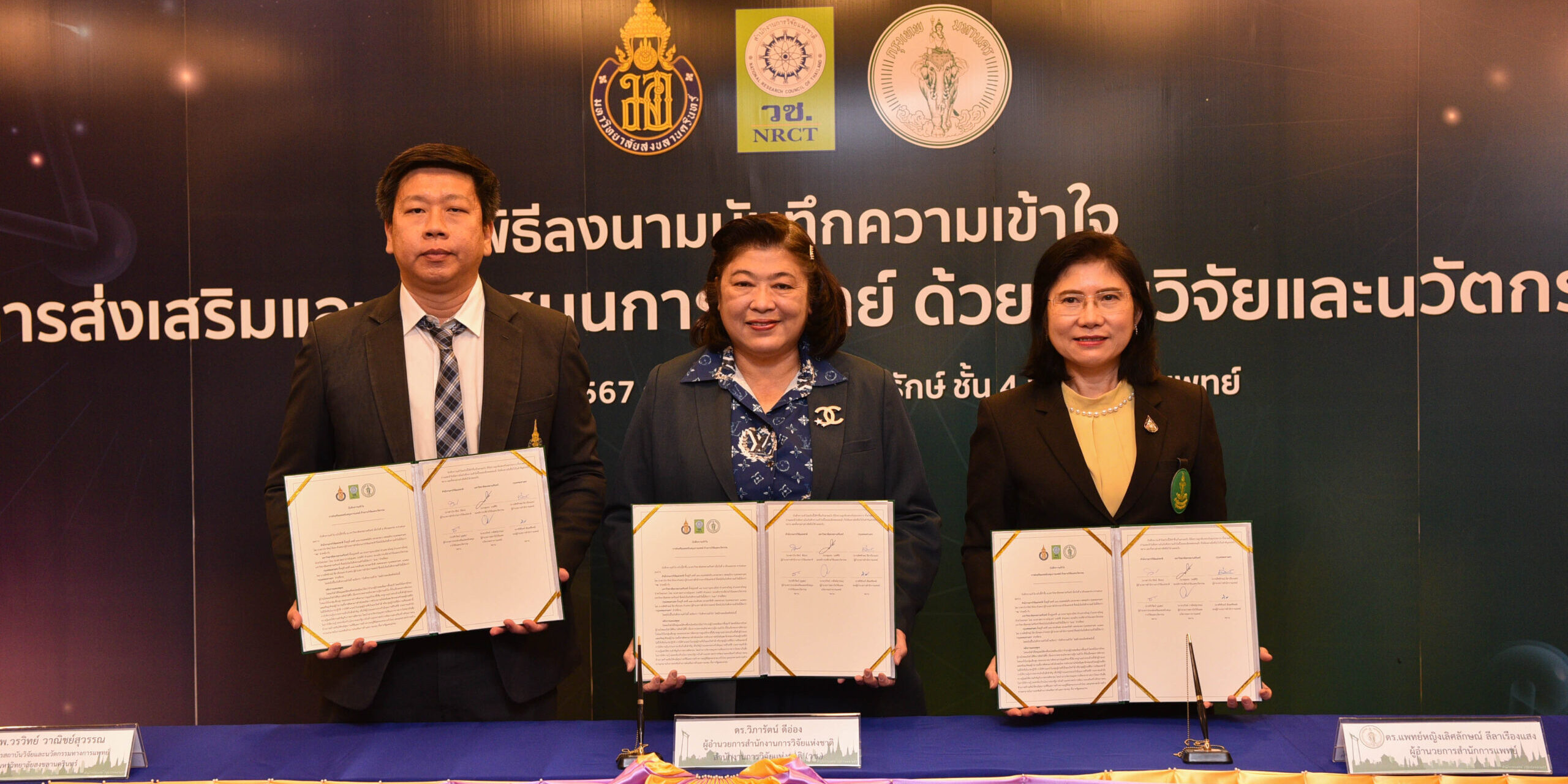 สำนักงานการวิจัยแห่งชาติ (วช.) ร่วมกับ มหาวิทยาลัยสงขลานครินทร์ (ม.อ.) และ กรุงเทพมหานคร (กทม.) จัดพิธีลงนามบันทึกความเข้าใจและสนับสนุนการแพทย์ ด้วยงานวิจัยและนวัตกรรม โดยมี ดร.วิภารัตน์ ดีอ่อง ผู้อำนวยการสำนักงานการวิจัยแห่งชาติ พร้อมด้วย รองศาสตราจารย์ นายแพทย์วรวิทย์ วาณิชย์สุวรรณ ผู้อำนวยการสถาบันวิจัยและนวัตกรรมทางการแพทย์ มหาวิทยาลัยสงขลานครินทร์ และ ดร.แพทย์หญิงเลิศลักษณ์ ลีลาเรืองแสง ผู้อำนวยการสำนักการแพทย์ กรุงเทพมหานคร ร่วมกันลงนามความร่วมมือฯ และมีคณะผู้บริหาร วช. และคณะผู้บริหาร สำนักการแพทย์ ร่วมเป็นสักขีพยานในการลงนามครั้งนี้ ณ สำนักการแพทย์ กรุงเทพมหานคร