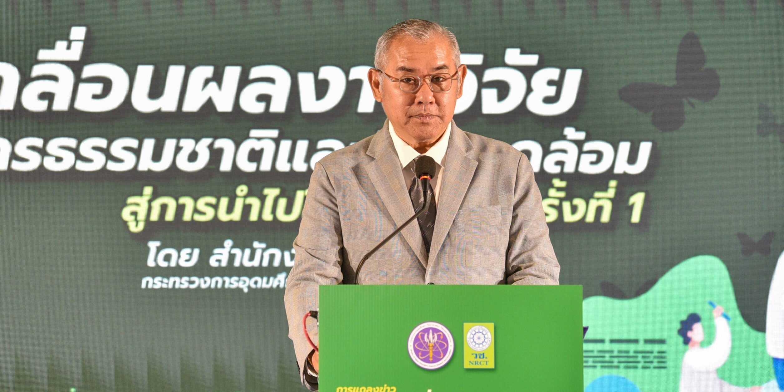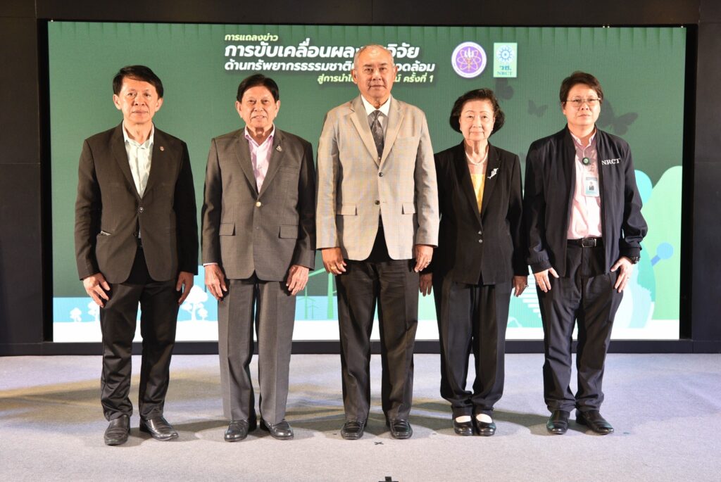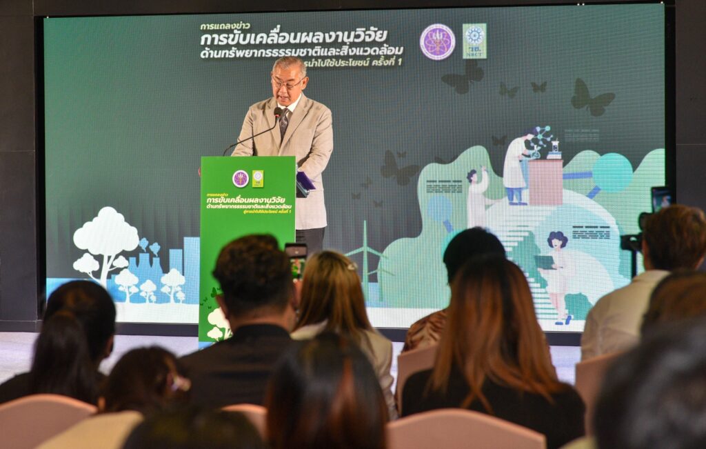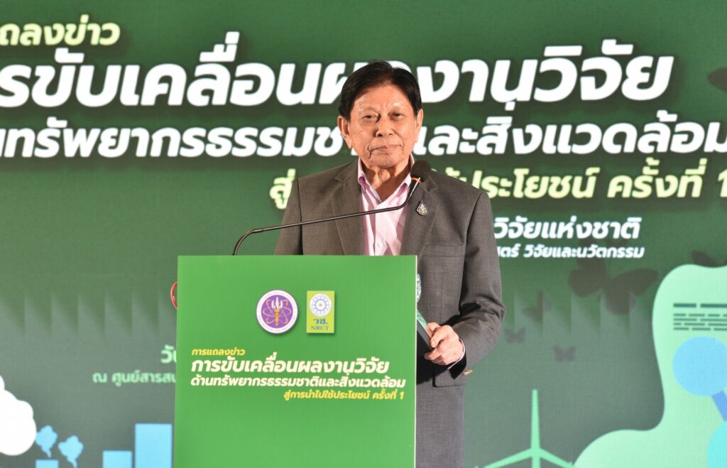 วันที่ 5 เมษายน 2567 สำนักงานการวิจัยแห่งชาติ (วช.) กระทรวงการอุดมศึกษา วิทยาศาสตร์ วิจัยและนวัตกรรม (อว.) จัดงานแถลงข่าวการขับเคลื่อนผลงานวิจัยด้านทรัพยากรธรรมชาติและสิ่งแวดล้อมสู่การนำไปใช้ประโยชน์ ครั้งที่ 1 เพื่อประเมินผลผลิต ผลลัพธ์ ผลกระทบของโครงการวิจัย วิเคราะห์ และขับเคลื่อนผลงานวิจัยสู่การนำไปใช้ประโยชน์จริง โดย ดร.วิภารัตน์ ดีอ่อง ผู้อำนวยการสำนักงานการวิจัยแห่งชาติ มอบหมายให้ นายสมปรารถนา สุขทวี รองผู้อำนวยการสำนักงานการวิจัยแห่งชาติ เป็นประธานในพิธี พร้อมด้วย รศ.ดร.นภาวรรณ นพรัตนราภรณ์ ผู้อำนวยการแผนงานศูนย์ขับเคลื่อนผลงานวิจัยด้านทรัพยากรธรรมชาติและสิ่งแวดล้อมสู่การนำไปใช้ประโยชน์ กล่าวถึงวัตถุประสงค์ของการจัดโครงการ และ ศ. ดร.สนิท อักษรแก้ว ประธานกรรมการดำเนินงานสนับสนุนการวิจัยและนวัตกรรม ประเด็นเป้าหมายด้านการพัฒนาสุขภาพ สังคม และสิ่งแวดล้อม (วช.) กล่าวสรุปการแถลงข่าว ณ ศูนย์สารสนเทศกลางด้านวิทยาศาสตร์ วิจัยและนวัตกรรม สำนักงานการวิจัยแห่งชาติ