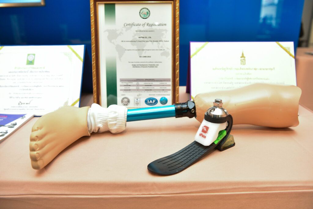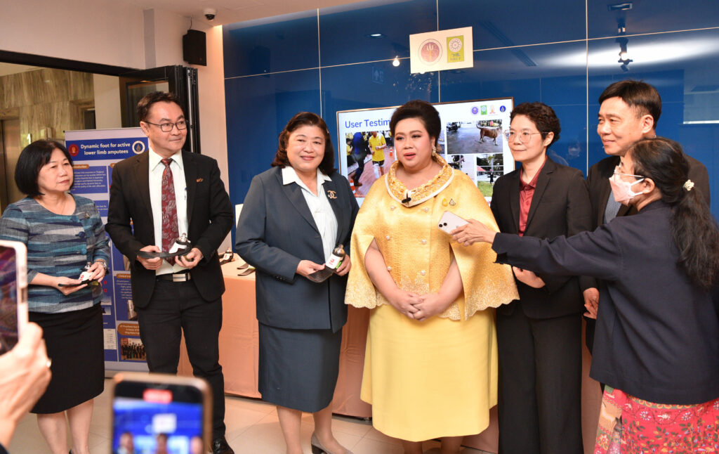 ซึ่งมี รศ.ดร.ไพรัช ตั้งพรประเสริฐ หัวหน้าโครงการวิจัยฯ พร้อมด้วยตัวแทนผู้รับมอบนวัตกรรมเท้าเทียม ทั้ง 7 แห่ง ได้แก่ โรงเรียนกายอุปกรณ์สิรินธร โรงพยาบาลสิรินธร ศูนย์การแพทย์สมเด็จพระเทพรัตนราชสุดา ฯ โรงพยาบาลนครปฐม โรงพยาบาลสมุทรสาคร สถาบันราชประชาสมาสัย สมุทรปราการ และ โรงพยาบาลเจ้าพระยาอภัยภูเบศร ปราจีนบุรี ซึ่งมีตัวแทนผู้พิการขึ้นรับมอบนวัตกรรมเท้าเทียม ณ สำนักงานปลัดกระทรวงการอุดมศึกษา วิทยาศาสตร์ วิจัยและนวัตกรรม