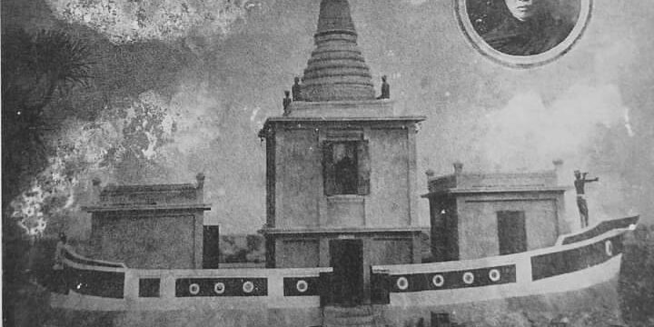 พระบาทสมเด็จพระจุลจอมเกล้าเจ้าอยู่หัว รัชกาลที่ 5 เสด็จพระราชดำเนินทรงสักการะ พระเจดีย์ทรงเรือมรรคสัจจ์ และ