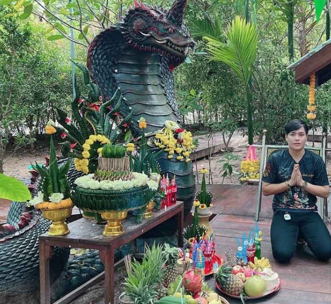 มีรูปปั้นพญานาคให้คนไปกราบไหว้ขอพร แต่ละวันมีคนไปกราบไหว้จำนวนมาก เป็นเจ้าของบริษัทจำกัด น๊อตตี้ มีเพจใบ้หวยดังมีคนติดตามกว่า 2 ล้าน และยังเป็นเจ้าของบริษัทน้ำปลาร้า