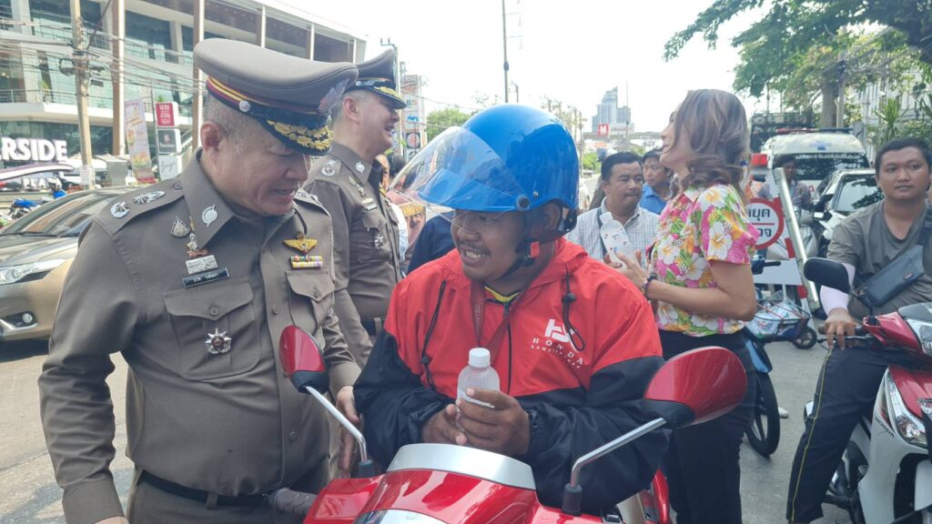 วันที่ 9 เม.ย. พล.ต.ท.ธิติ แสงสว่าง ผบช.น.มอบหมายให้ พล.ต.ต.ธวัช วงศ์สง่า รอง ผบช.น. เป็นประธานในพิธีเปิดโครงการรณรงค์ขับขี่ปลอดภัย สวมหมวกนิรภัยเทศกาลสงกรานต์ 2567 ณ บริเวณด้านหน้าสถานีตำรวจนครบาลสำเหร่ ถนนเจริญนคร แขวงสำเหร่ เขตธนบุรี กทม.โดยมี พล.ต.ต.ภานพ วรธนัชชากุล ผบก.น.8 พ.ต.อ.ธนา มะลิงาม ผกก.สน.สำเหร่ และ พ.ต.ต.จิรายุ กีรติยุตอมรกุล สว.จร.สน.สำเหร่ พาคณะข้าราชการตำรวจ พร้อม ทีมแพทย์กู้ชีพโรงพยาบาล บางปะกอก 9 อินเตอร์เนชั่นแนล ร่วมแจกหมวกนิรภัย น้ำดื่ม ยาดม และแผ่นพับประชาสัมพันธ์โครงการ ให้แก่ผู้ใช้รถใช้ถนน พี่สัญจรผ่านไปมาบริเวณหน้าโรงพัก