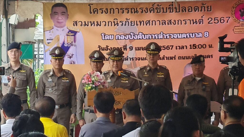 พล.ต.ต.ธวัช กล่าวว่า ปัจจุบันอุบัติเหตุจากจราจรทางบกก่อให้เกิดความสูญเสียในชีวิตและทรัพย์สินของประชาชน โดยเฉพาะอย่างยิ่งอุบัติเหตุจากการขับขี่รถจักรยานยนต์ทำให้มีผู้เสียชีวิตและได้รับบาดเจ็บจำนวนมาก ซึ่งมักจะเกิดขึ้นกับเด็กและเยาวชน สาเหตุส่วนใหญ่เกิดจากพฤติกรรมการขับขี่ของผู้ขับขี่รถจักรยานยนต์ที่มีความประมาท คึกคะนอง ไม่เคารพกฎจราจรและสภาพของรถจักรยานยนต์ที่ไม่ปลอดภัย ดังนั้นกองบัญชาการตำรวจนครบาล จึงได้ริเริ่มโครงการรณรงค์ขับขี่ปลอดภัย สวมหมวกนิรภัย เทศกาลสงกรานต์ 2567 โดยเล็งเห็นว่าโครงการดังกล่าวเป็นโครงการที่ดี ที่จะทำให้ประชาชน นักเรียน และเยาวชนในพื้นที่ ปฏิบัติตามกฎหมายจราจรโดยเคร่งครัด