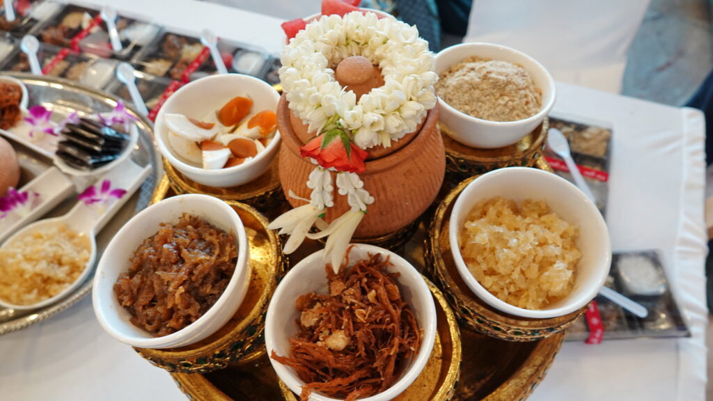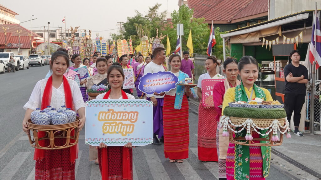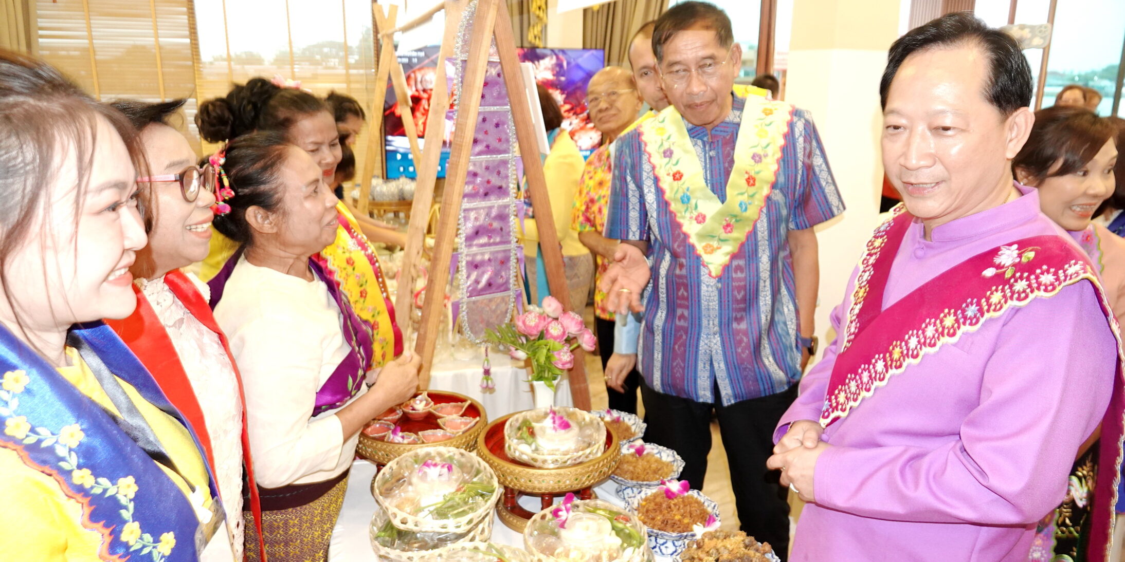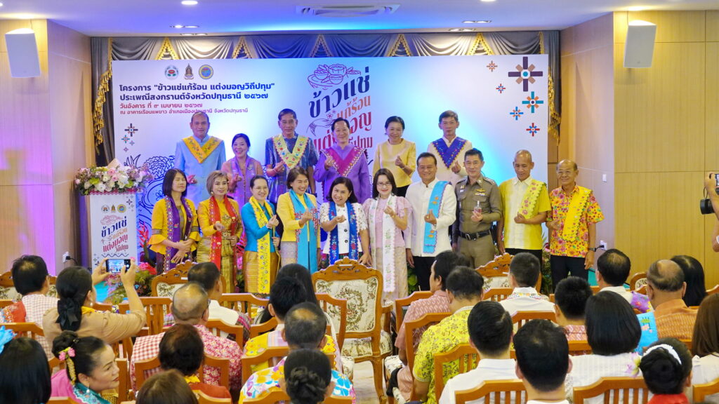 บรรยากาศงานชวนกินข้าวแช่แก้ร้อน แต่งมอญวิถีปทุม รับเทศกาลสงกรานต์ที่จะถึงนี้ มี พล.ต.ท.คำรณวิทย์ ธูปกระจ่าง นายกองค์การบริหารส่วนจังหวัดปทุมธานี , ร้อยตำรวจเอก ดร.ตรีลุพธ์ ธูปกระจ่าง นายกเทศมนตรีนครรังสิต , นางลัษมา ธารีเกษ วัฒนธรรมจังหวัดปทุมธานี , เครือข่ายสภาวัฒนธรรมจังหวัดปทุมธานี สภาวัฒนธรรมอำเภอเมืองปทุมธานี สภาวัฒนธรรมตำบลบางปรอก และสมาพันธ์ชาวไทยเชื้อสายรามัญจังหวัดปทุมธานี และทุกภาคส่วนในจังหวัดปทุมธานี ร่วมต้อนรับขบวนแห่หงส์ ธงตะขาบ สำรับข้าวแช่แบบชาวมอญรามัญ สำหรับการจัดงาน “ข้าวแช่แก้ร้อน แต่งมอญวิถีปทุม” มีวัตถุประสงค์เพื่อนำทุนทางวัฒนธรรมภูมิปัญญาอาหารพื้นถิ่นประจำเทศกาลสงกรานต์รามัญ ที่มีอัตลักษณ์มาเผยแพร่ประชาสัมพันธ์ให้เป็นที่รู้จัก รวมทั้งต่อยอดให้เป็นอุตสาหกรรมวัฒนธรรมสร้างสรรค์ของดีประจำจังหวัดปทุมธานี ทั้งด้านอาหาร (Food) และเทศกาลประเพณี (Festival) เป็นพลัง soft power ขับเคลื่อนการนำทุนทางวัฒนธรรมมาสร้างมูลค่าทางเศรษฐกิจได้อย่างเป็นรูปธรรมกิจกรรมภายในงาน ประกอบด้วย การชม ชิม ข้าวแช่จากร้านค้าที่มีชื่อเสียงในจังหวัดปทุมธานี จำนวน 6 ร้าน ได้แก่ นิสากรข้าวแช่รามัญ ข้าวแช่ทุ่งนามอญ ร้านแม่น้ำ ร้านบ้านรามัญ ข้าวแช่บ้านเรา ภัตตาคาร บ้านปากคลอง การสาธิตและบรรยายองค์ความรู้ข้าวแช่รามัญ นิทรรศการอาหารท้องถิ่น ประเพณีสงกรานต์วิถีรามัญ ขบวนแห่หงส์ ธงตะขาบ การแสดงทางวัฒนธรรม และการจัดแสดงภูมิปัญญาไทยรามัญ อาทิ การปักสไบมอญ การทำธงตะขาบ การตัดพวงมโหตร และการกวนกาละแม