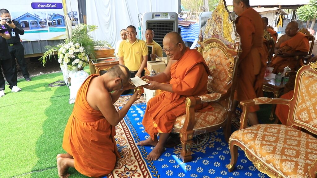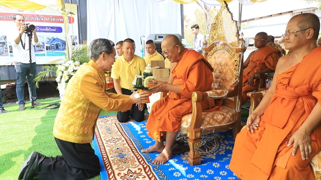 โดยคณะสงฆ์จังหวัดลพบุรี ร่วมกับหน่วยงานราชการ และประชาชนได้ร่วมใจกันสร้างบ้านตามโครงการสังฆประชานุเคราะห์ ซึ่งบ้านลักษณะ ชั้นเดียวคอนกรีตเสริมเหล็ก กว้าง 6 เมตร ยาว 12 เมตร 2 ห้องนอน 1 ห้องรับแขก 1 ห้องน้ำ และห้องครัว โดยได้รับการบริจาค จากพระมหาเถระ พระเถระ เจ้าคณะพระสังฆาธิการ และข้าราชการ ประชาชนอย่างกว้างขวางร่วมกัน สำหรับค่าใช้จ่ายในการก่อสร้าง ในครั้งนี้ รวมเป็นเงินทั้งสิ้น 832,103 บาท พร้อมกันนี้ คณะสงฆ์จังหวัดลพบุรี ได้นำถุงยังชีพ และข้าวสารมามอบให้แก่ประชาชนจำนวน 200 ชุด พร้อมทั้งจัดโรงทานเลี้ยงอาหารแก่ประชาชนในพื้นที่อีกด้วย