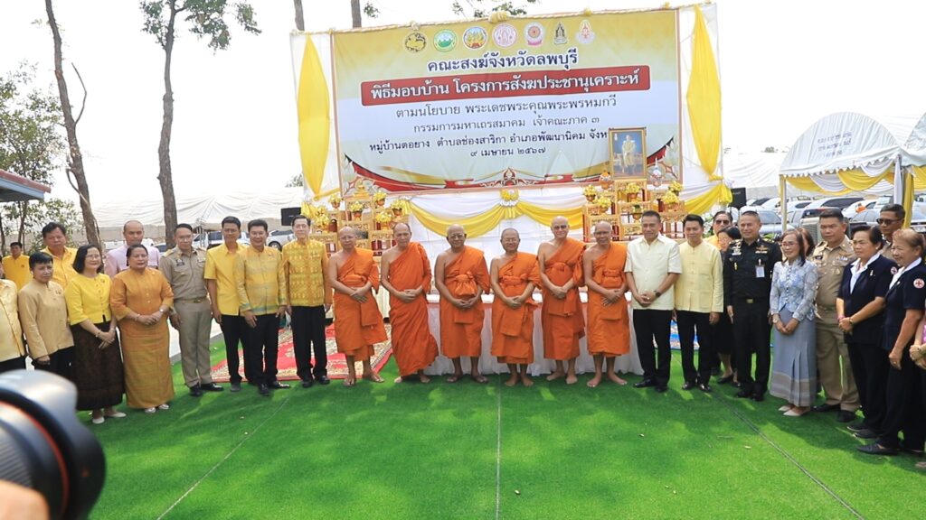 วันที่ 9 เมษายน 2567 เวลา 14.00 น. พระพรหมกวี กรรมการมหาเถรสมาคม เจ้าคณะภาค 3 หัวหน้าพระธรรมทูตสายที่ 2 วัดกัลยาณมิตร กรุงเทพมหานคร เป็นประธานฝ่ายสงฆ์ นายอำพล อังคภากรณ์กุล ผู้ว่าราชการจังหวัดลพบุรี เป็นประธานฝ่ายฆราวาส ในพิธีมอบบ้านตามโครงการสังฆประชานุเคราะห์ฯ แก่ผู้ยากไร้ ณ หมู่บ้านตอยาง บ้านเลขที่ 112/3 หมู่ที่ 6 ตำบลช่องสาริกา อำเภอพัฒนานิคม จังหวัดลพบุรี โดยมี พระเทพเสนาบดี เจ้าคณะจังหวัดลพบุรี เจ้าอาวาสวัดกวิศรารามราชวรวิหาร พระครูภัทรธรรมคุณ เจ้าคณะอำเภอพัฒนานิคม คณะสงฆ์จังหวัดลพบุรี พร้อมด้วย นายอินทพร จั่นเอี่ยม ผู้อำนวยการสำนักงานพระพุทธศาสนาแห่งชาติ หัวหน้าส่วนราชการ นายอำเภอ ผู้นำท้องที่ ผู้ท้องถิ่น กำนัน ผู้ใหญ่บ้าน และประชาชนร่วมพิธีในครั้งนี้