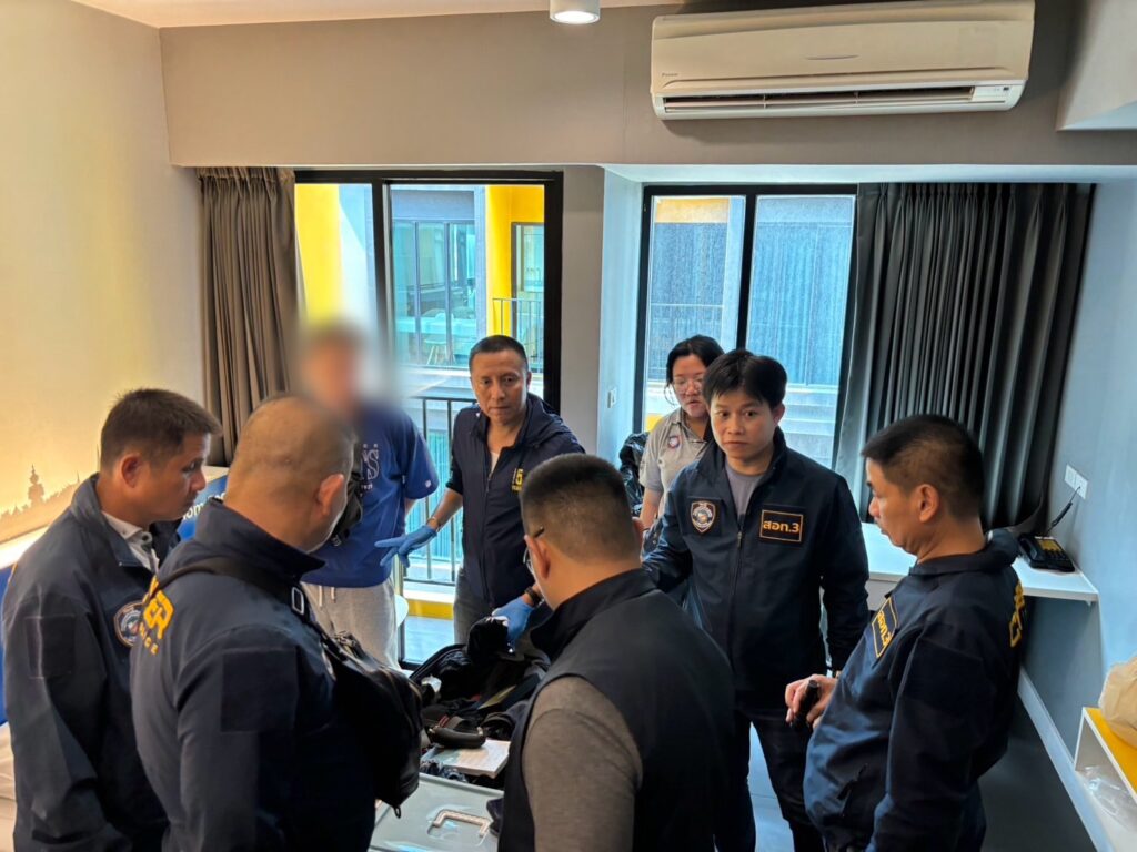 หลังรับแจ้งชุดสืบสวนทำการตรวจสอบและถอดแผนพฤติกรรม กระทั่งพบว่าคนร้ายได้มีการใช้เครื่องสติงเรย์ ในการส่งสัญญาณไปยังโทรศัพท์มือถือที่อยู่บริเวณใกล้เคียง แล้วส่งข้อความแนบลิงก์ปลอม ต่อมาได้ตรวจพบความเคลื่อนไหวได้ที่บริเวณห้างสรรพสินค้าสยามพารากอน จึงได้นำกำลังไปตรวจสอบ เมื่อไปถึงก็พบผู้ต้องหาทั้งสองคนในลักษณะต้องสงสัยมีการสะพายกระเป๋าเดินวนไปมา เจ้าหน้าที่จึงแสดงตัวขอทำการตรวจสอบ ก็พบเครื่องสติงเรย์ จำนวน 1 เครื่อง ผลิตจากประเทศมาเลเชีย ก่อนนำตัวไปตรวจค้นที่ห้องพักในโรงแรมแห่งหนึ่งย่านบางรัก ก็พบแบตเตอรี่สำรอง 1 เครื่องจึงทำการตรวจยึดไว้ ผบช.สอท. กล่าว