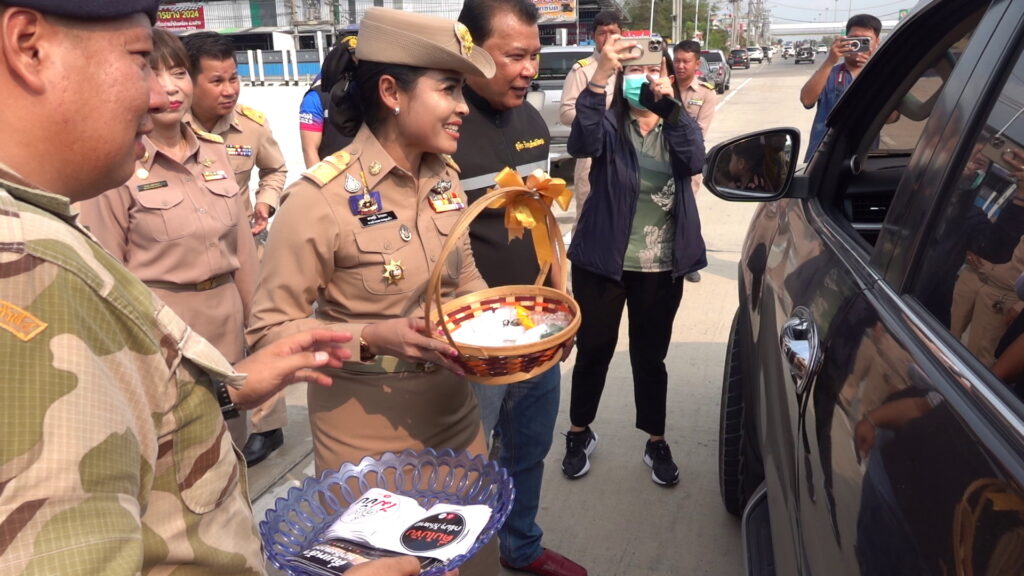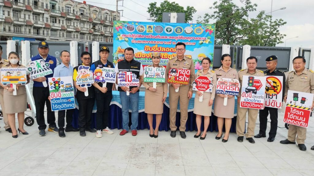 ร้อยตำรวจตรีหญิง สายสุนี ไกรนรา นายอำเภอลาดหลุมแก้ว กล่าวว่า ในฐานะผู้อำนวยการศูนย์ปฏิบัติการความปลอดภัยทางถนนอำเภอลาดหลุมแก้ว ทางอำเภอลาดหลุมแก้ว จังหวัดปทุมธานี ได้กำหนดให้มีการดำเนินการป้องกันและลดอุบัติเหตุทางถนนในช่วงเทศกาลอย่างต่อเนื่อง เพื่ออำนวยความสะดวกและความปลอดภัยในการเดินทางแก่ผู้ใช้รถใช้ถนนในช่วงเทศกาลสงกรานต์ โดยศูนย์อำนวยการความปลอดภัยทางถนน ได้กำหนดหัวข้อหลักในการรณรงค์ป้องกัน และลดอุบัติเหตุทางถนนช่วงเทศกาลสงกรานต์ พ.ศ. 2567 ใช้ชื่อว่า “ขับขี่ปลอดภัย เมืองไทย ไร้อุบัติเหตุ ” โดยมีเป้าหมายเพื่อให้ประชาชนเดินทางสุขใจกับชีวิตวิถีใหม่ ที่ห่างไกลอุบัติเหตุในช่วงเทศกาลสงกรานต์