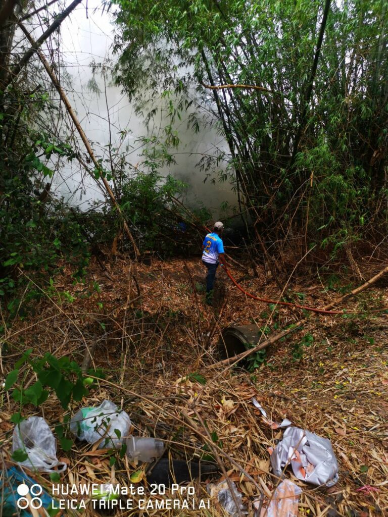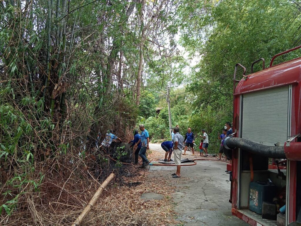 อ้ายมีคนมือบอนแอบจุดไฟริมทางเกิดไฟลุกลาม เกิดมีควันไหสีดำลอยคลุมทั่วตำบลประชาชนเดือดร้อน