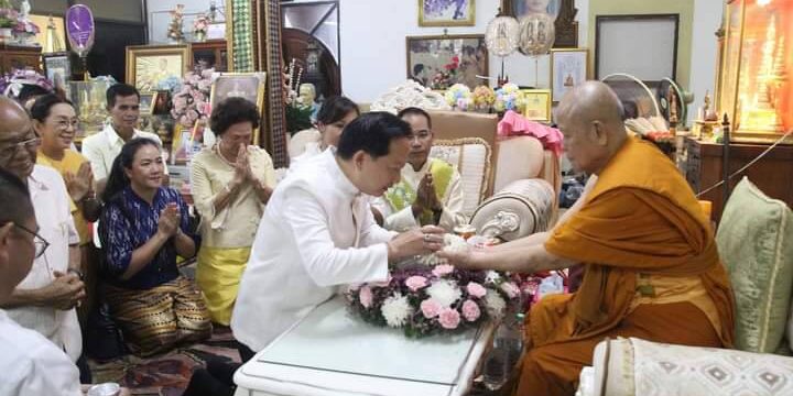 เมื่อวันที่ 10 เม.ย.67 เวลา 10.00 น. นายภาสกร บุญญลักษม์ ผู้ว่าราชการจังหวัดปทุมธานี นำหัวหน้าส่วนราชการและเครือข่าวสภาวัฒนธรรมจังหวัดปทุมธานี ร่วมถวายข้าวแช่แด่พระราชสุทธิธรรมาจารย์ เจ้าคณะจังหวัดปทุมธานี เจ้าอาวาสวัดประยูรธรรมาราม อำเภอลำลูกกา จังหวัดปทุมธานี ตามประเพณีของชาวรามัญในเทศกาลสงกรานต์ และกราบขอพรเพื่อความเป็นสิริมงคล ในโอกาสนี้ ได้ร่วมพิธีเจริญพระพุทธมนต์ เนื่องในวันคล้ายวันเกิด พระราชสุทธิธรรมาจารย์ เจ้าคณะจังหวัดปทุมธานีด้วย ทั้งนี้ “ข้าวแช่” เป็นหนึ่งในวัฒนธรรมทางด้านอาหารของชุมชนชาวมอญในจังหวัดปทุมธานี สมัยโบราณจะถือเอาวันสงกรานต์เป็นวันขึ้นปีใหม่ เป็นเทศกาลที่มีความสำคัญเป็นอย่างยิ่ง โดยแต่ละบ้านจะมีการเตรียมงานกันเป็นเดือนๆ ตั้งแต่การทำความสะอาดบ้าน การเตรียมเสื้อผ้าชุดใหม่สำหรับสวมใส่ รวมไปถึงอาหารการกิน ซึ่งหนึ่งในนั้นคือ “ข้าวแช่” หรือที่ชาวมอญเรียกว่า “เปิงซังกราน” มีความหมายถึง “กินข้าวแช่” มีพิธีและขั้นตอนการทำมากมาย ก่อนจะทำต้องเตรียมวัสดุอุปกรณ์ให้พร้อม การหุงข้าวแช่เป็นเอกลักษณ์เฉพาะของชาวมอญ บ่งบอกถึงความเชื่อ ภูมิปัญญา และมีคุณค่าต่อศาสนา วัฒนธรรมและครอบครัวมาก การหุงข้าวแช่ต้องหุงกลางแจ้ง และนิยมทำในเทศกาลสงกรานต์เท่านั้น เมื่อถึงวันสงกรานต์ญาติมิตรที่อยู่ไกลๆ ก็จะกลับมาบ้านเพื่อทำข้าวแช่ไปทำบุญและตั้งศาลของบ้านขึ้นมาเพื่อเซ่นไหว้ท้าวกบิลพรหมในปีนั้นๆ นำข้าวแช่ไปถวายแด่พระสงฆ์และส่งข้าวแช่ให้ญาติผู้ใหญ่ที่เคารพนับถือและกราบไหว้ขอพรเป็นการแสดงการคารวะอีกด้วย