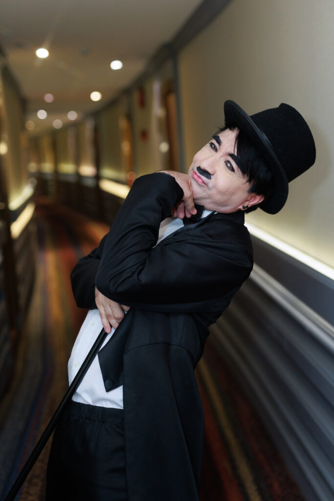 “ก่อนอื่นผมต้องขอบคุณ นีโน่ (รัฐบาล พรหมสาขา ณ สกลนคร) พี่เพชร-พุฒิพงศ์ พรหมสาขา ณ สกลนคร และ บริษัท ดราก้อนออแกไนซ์เซอร์ กรุ๊ป จำกัด ผู้อำนวยการจัดงาน ที่ให้เกียรติผมมาร่วมเป็นส่วนหนึ่งในงานนี้ ก็ต้องยอมรับว่าตื่นเต้นครับ ไม่คิดว่าจะได้มาสวมบท นักแสดงตลกที่มีชื่อเสียงระดับโลกเช่นนี้ กับคาแร็กเตอร์ที่เป็นเอกลักษณ์ของเขา ผมทำการบ้านเยอะเหมือนกัน ไปดู youtube เก่าๆ ดูท่าทางการยืน การเดิน หรือการแสดงสีหน้าของเขาครับ ซึ่งต้องฝึกเลยล่ะ เพราะเราก็ไม่เคยแสดงแบบนี้มาก่อน แม้ว่าจะเป็นการแสดงบนรถไม่กี่นาที เราก็ต้องเต็มที่ และแสดงบทบาทของเขาให้ออกมาดีที่สุดครับ”
