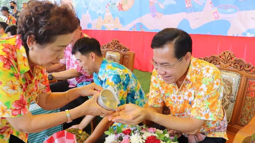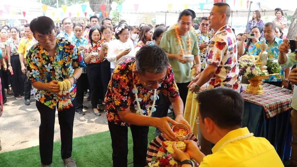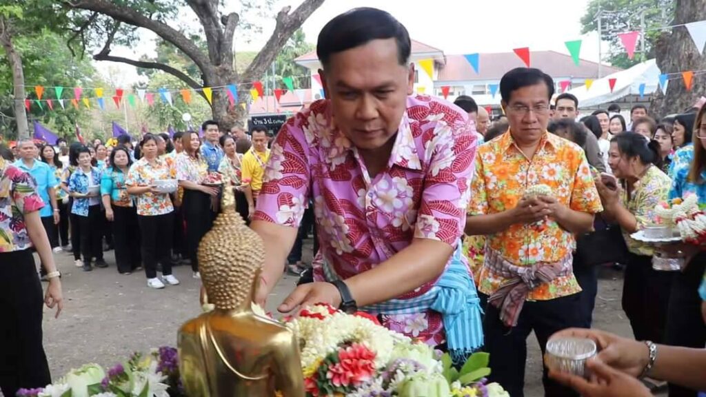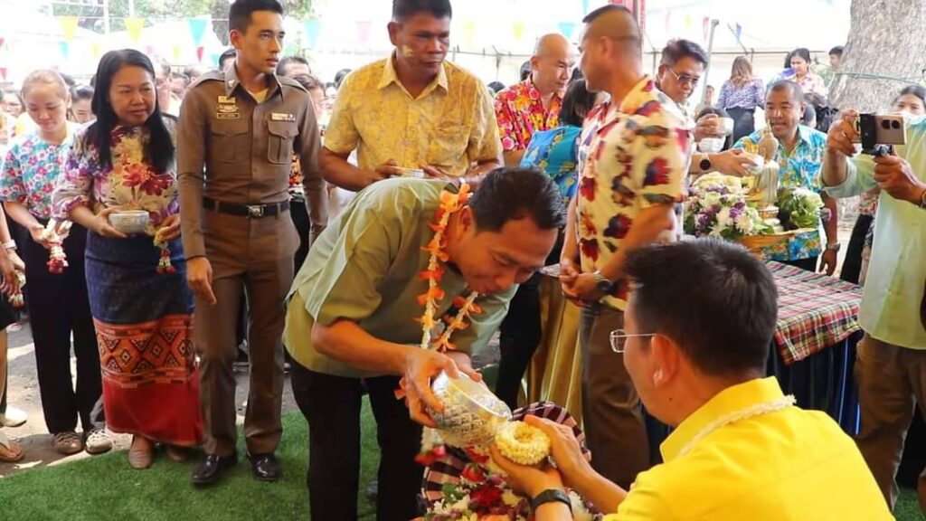วันที่ 11 เมษายน 2567 เวลา 13.00 น.นายสุเมธ ธีรนิติ ผู้ว่าราชการจังหวัดสิงห์บุรี พร้อมนางวาสนา ธีรนิติ นายกเหล่ากาชาดจังหวัดสิงห์บุรี เป็นประธานในพิธี”รดน้ำขอพร เนื่องในเทศกาลสงกรานต์ จังหวัดสิงห์บุรี”ณ ลานอเนกประสงค์สำนักงานเหล่ากาชาดจังหวัดสิงห์บุรี โดยมีนายวราดิศร อ่อนนุช พร้อมนายปรีชา ดิลกพรเมธี รองผู้ว่าราชการจังหวัดสิงห์บุรี หัวหน้าส่วนราชการ นายอำเภอ ข้าราชการและเจ้าหน้าที่ รดน้ำขอพร ผู้ว่าราชการจังหวัดสิงห์บุรี นายกเหล่ากาชาดจังหวัดสิงห์บุรี และรองผู้ว่าราชการจังหวัดสิงห์บุรี เนื่องในโอกาสเทศกาลสงกรานต์และวันขึ้นปีใหม่ไทย เพื่อความเป็นสิริมงคล อนุรักษ์ประเพณีดีงามของไทย