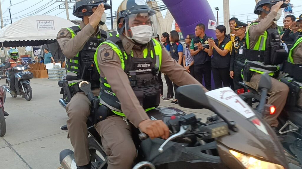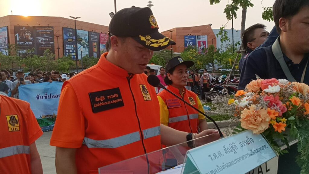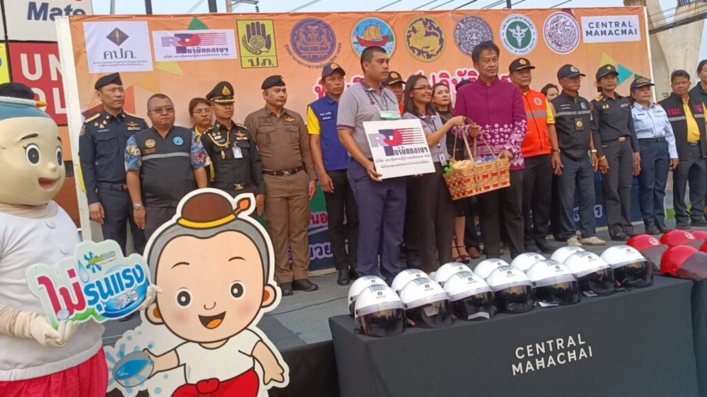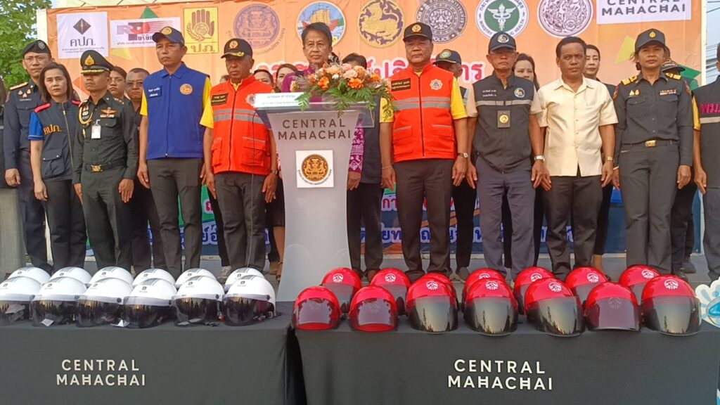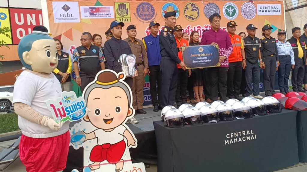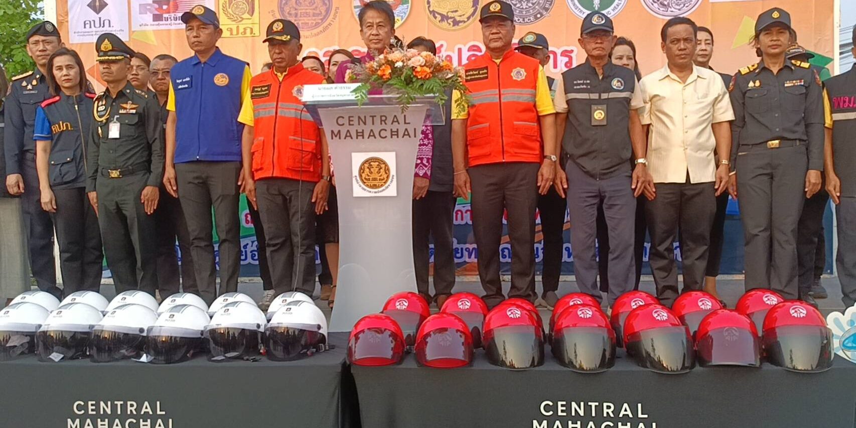 ที่ลานเอนกประสงค์ลานจอดรถ ศูนย์การค้าห้างเซ็นทรัล มหาชัย ถ.พระราม 2 หมู่ 4 ต.นาดี อ.เมือง จ.สมุทรสาคร นายผล ดำธรรม ผู้ว่าราชการการจังหวัดสมุทรสาคร พร้อมด้วย รองผู้ว่าราชการการจังหวัด ตำรวจ ทหาร ขนส่ง จัดหางาน เจ้าท่า หน่วยบรรเทาสาธารณะภัย รณรงค์ลดอุบัติเหตุทางถนนในช่วงเทศกาลวันสงกรานต์ ขับขี่ปลอดภัย 7 วัน อันตราย ระหว่างวันที่ 11-17 เมษายน 2567 กับผู้เดินทางในถนนสายหลักและถนนสายรองที่จะต้องใช้เส้นทางเออกต่างจังหวัดเพื่อป้องกันและลดอุบัติเหตุอย่างมีประสิทธิภาพ